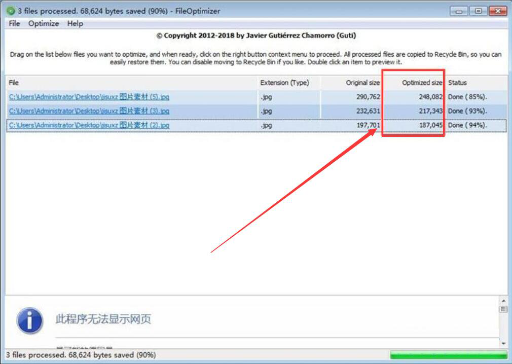 很多人拍完图片后,都是直接上传到相关网站的。虽然上传成功了,但是当打开的时候,才发现图片加载了半天都加载不出来,因为图片太大了。为了解决这一问题,我们可以用FileOptimizer批量压缩图片,将图片体积变小。考虑到很多人没接触过该软件,下面就为大家分享FileOptimizer批量压缩图片的教程。  FileOptimizer如何批量压缩图片? 1、首先,我们打开FileOptimizer软件,点击“File”菜单中的“Add29. 失恋后要善于排除自己的痛苦,会运用旅游、散步、听音乐、看书、写作、运动、与人倾谈、更勤奋的工作等办法来分散注意力,自我解脱。 files”功能选项。  2、在弹出的窗口中,我们将需要批量压缩的图片一并选中,再点击“打开”按钮,将其导入FileOptimizer软件。  3、此时,在FileOptimizer软件界面,我们可以看到每张图片的实际大小。  4、接下来,我们点击FileOptimizer软件“Optimize”菜单中的“Optimize all files Ctrl+O”选项,FileOptimizer便开始批量压缩图片。  5、最后,图片批量压缩完成,我们可以在FileOptimizer界面中看到每张图片压缩的强度,以及每张图片压缩前后的大小对比。  图片太大,不仅会占用更多的磁盘空间,还会影响图片的上传以及加载。我们可以用FileOptimizer批量压缩图片,操作简单,压缩后图片质量不会受到明显的影响。 -