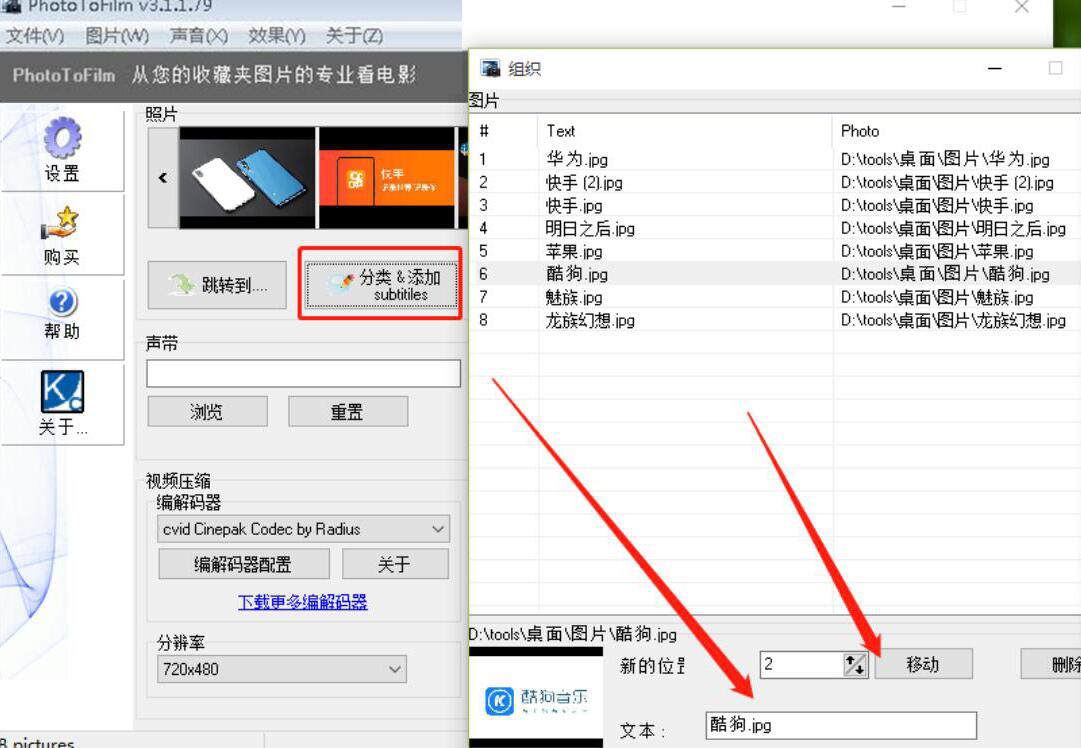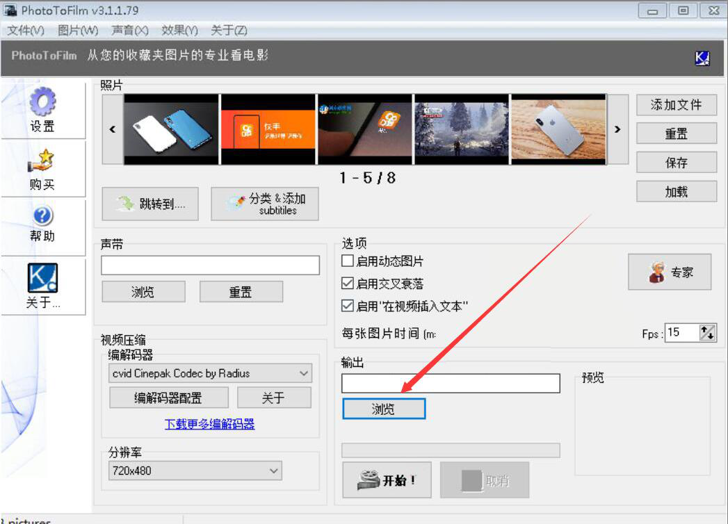 以前很多人在做产品图片展示的时候,要么是做成一个文档打印出来,要么是做成幻灯片的形式来播放。可是这样的效果总是不够吸引人,很多人都不愿意认真地去看。为了解决这一问题,我们可以用PhotoToFilm把图片制作成视频。考虑到很多人不懂如何操作,下面就为大家讲解Pho42. 失恋算个啥?世上难找三条腿的蛙,两条腿的大活人遍天涯!toToFilm如何把图片制作成视频。  PhotoToFilm如何把图片制作成视频? 1、首先,我们打开PhotoToFilm软件,点击界面右上方的“添加文件”按钮。  2、然后,在弹出的窗口中,我们选择制作成视频要用到的图片素材,并点击“打开”按钮,将其一并导入PhotoToFilm软件。  3、接下来,我们回到PhotoToFilm操作界面。点击“分类&添加”按钮,便会弹出组织窗口,从该窗口中,我们可以为每一张图片分别添加文本内容并设置图片展示的顺序。  4、要制作成视频的图片的信息分别编辑好了后,我们回到PhotoToFilm操作界面,点击“输出”中的“浏览”按钮。  5、此时,PhotoToFilm便会弹出另存为窗口,我们选择图片制作成视频后的文件保存路径,再点击“保存”按钮。  6、最后,我们回到PhotoToFilm操作界面,点击“开始!”按钮,PhotoToFilm便开始将这些图片制作成视频。  不想让图片以静态的方式一张张展示给别人看,就可以使用PhotoToFilm将这些图片制作成视频,这样会更加吸引人去关注,达到自己想要的宣传效果。 -