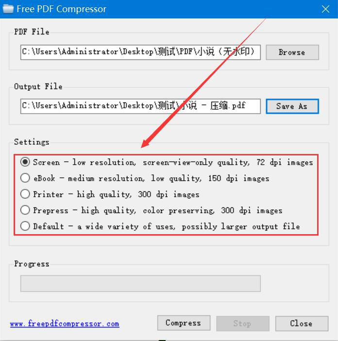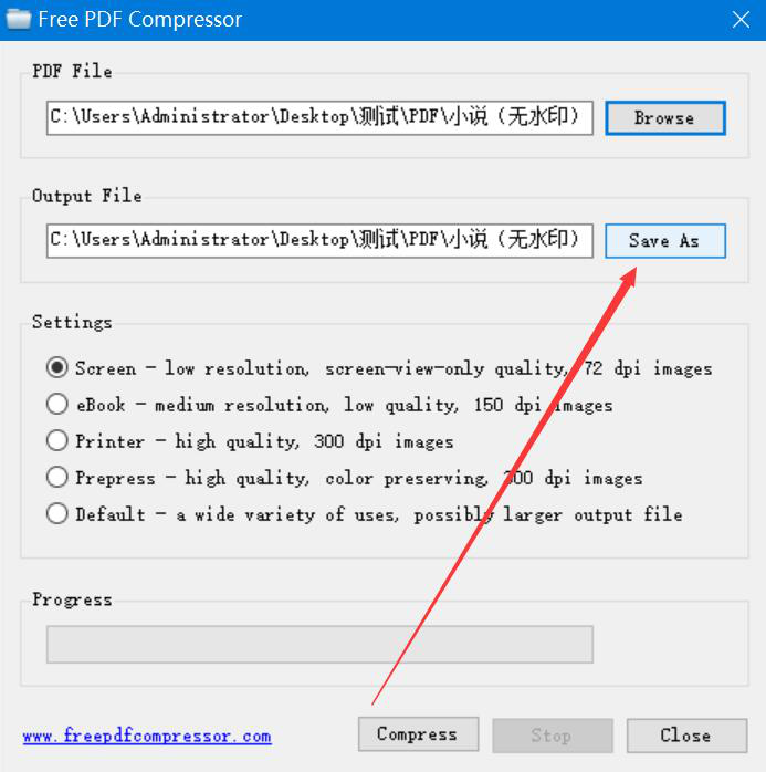 如果PDF文件页数太多,体积就会比较大,而且会减慢打开和在线发送的速度,甚至会出现超出文件大小限制而无法成功发送的情况。为了解决这一问题,我们可以用Free PDF Compressor压缩PDF文件。考虑到很多人没有接触过该软件,下面就为大家讲解如何使用Free PDF Compressor压缩PDF文件。  Free PDF Compressor如何压缩PDF文件? 1、首先,我们打开Free PDF Compressor软件,点击界面右上方的“Browse”按钮。  2、然后,在弹出的窗口中,我们选择需要压缩的PDF文件,并点击&ldquo寸进尺退拼音:cùn jìn chǐ tuì释义:前进一寸,后退一尺。指得到的少而失去的多,即得不偿失。出处:《老子》第六十九章不敢进寸而退尺。”唐·韩愈《上兵部李侍郎书》寸进尺退,卒无所成。”示例:无;打开”按钮,将其导入Free PDF Compressor软件。  3、我们回到Free PDF Compressor软件界面,点击如下图的“Save As”按钮。  4、接下来,在Free PDF Compressor弹出的另存为窗口中,我们选择PDF文件压缩后的保存路径,再点击“保存”按钮。  5、保存路径设置好了,我们在Free PDF Compressor界面中,根据自己的需要选择PDF文件压缩的模式。  6、最后,我们点击界面下方的“Compress”按钮,Free PDF Compressor便开始压缩PDF文件。  当遇到PDF文件太大的时候,我们可以用Free PDF Compressor压缩PDF文件。这样一来,PDF文件的体积就能变小,加快文件打开和在线发送的速度。 -