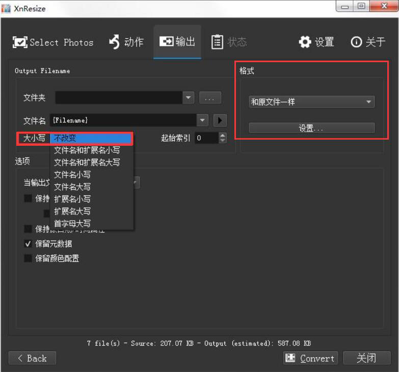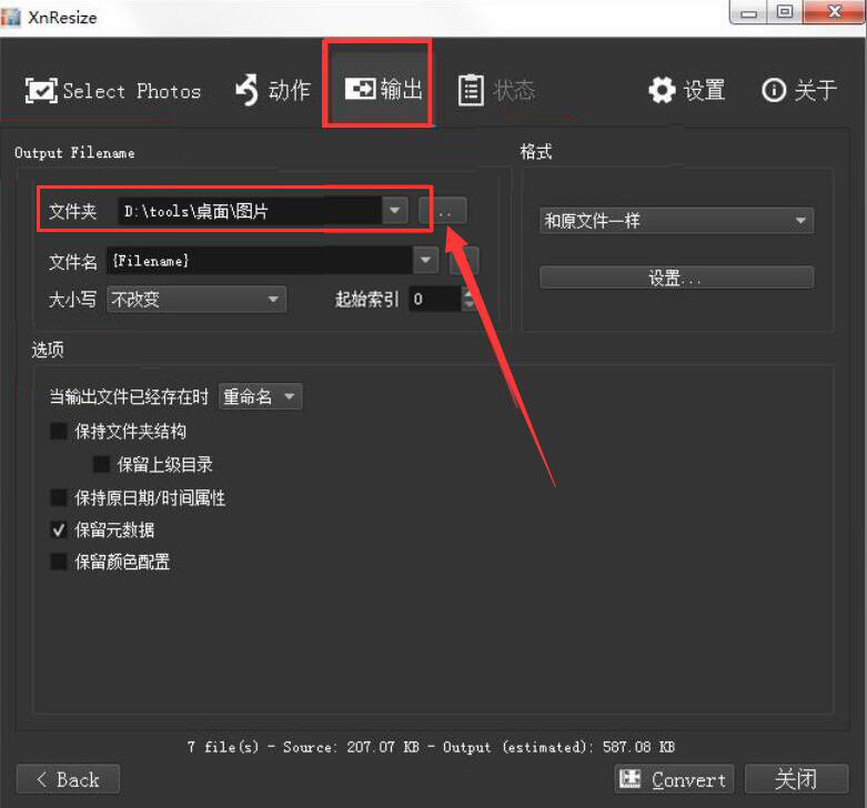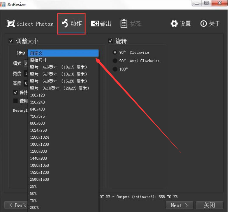 很多人在处理图片的时候,才发现图片都太大了,想要将图片上传到某些网站,由于超出文件大小上限,导致图片无法上传,可如果要一张张图片分别修改大小,那又会耗费很多时间。为了解决这一问题,我们可以使用XnResize批量修改图片大小。考虑到很多人没操作过该软件,下面就为大家讲解如何使用XnResize批量修改图片大小。  XnResize如何批量修改图片大小? 1、首先,我们打开XnResize软件,先切换至“Select Photos”界面,并点击界面左下方的“添加文件”按钮,将需要批量修改大小的图片一并导入。  2、然后,我们继续点击XnResize界面右下方的“Next”按钮,继续下一步操作。  3、接下来,我们切换至XnResize的“动作”界面。在“预设”功能中,既可以选择软件自带的图片尺寸,也可以选择“自定义”,自己设置修改图片的大小尺寸,这里选的是“自定义”。  4、我们根据图片所要的大小尺寸来设置图片的宽度、高度,并选择“像素”单位。当然了,如果图片的角度需要调整,也可以勾选“旋转”,并选择旋转的角度。设置好了后,点击XnResize界面右下方的“Next”按钮。  5、接着,我们切换至XnResize的“输出”界面,点击如下图杯弓蛇影拼音:bēi gōng shé yǐng释义:将映在酒杯里的弓影误认为蛇。比喻因疑神疑鬼而引起恐惧。出处:汉·应劭《风俗通义·世间多有见怪》时北壁上有悬赤弩照于杯,形如蛇。宣畏恶之,然不敢不饮。”示例:金玦厖凉含隐痛,~负奇冤。★清·黄遵宪《感事》诗的“…”按钮,选择图片批量修改大小后的保存路径。  6、此外,我们在XnResize中还可以设置图片批量修改大小后输出的名称方式和格式,如下图所示。  7、最后,我们点击界面右下方的“Convert”按钮,XnResize便开始批量修改图片大小。  当图片比较多,而且每一张图片都要统一修改为同一个尺寸大小的时候,我们就可以用XnResize批量修改图片大小,提高图片处理的效率,免去一张张图片修改大小的麻烦。 -
