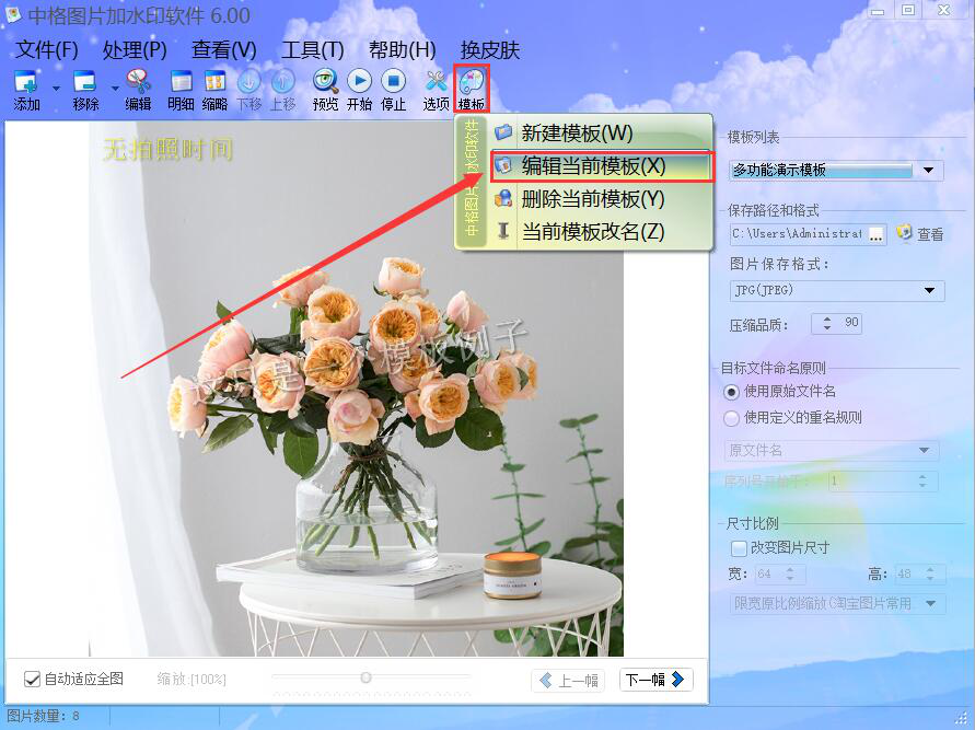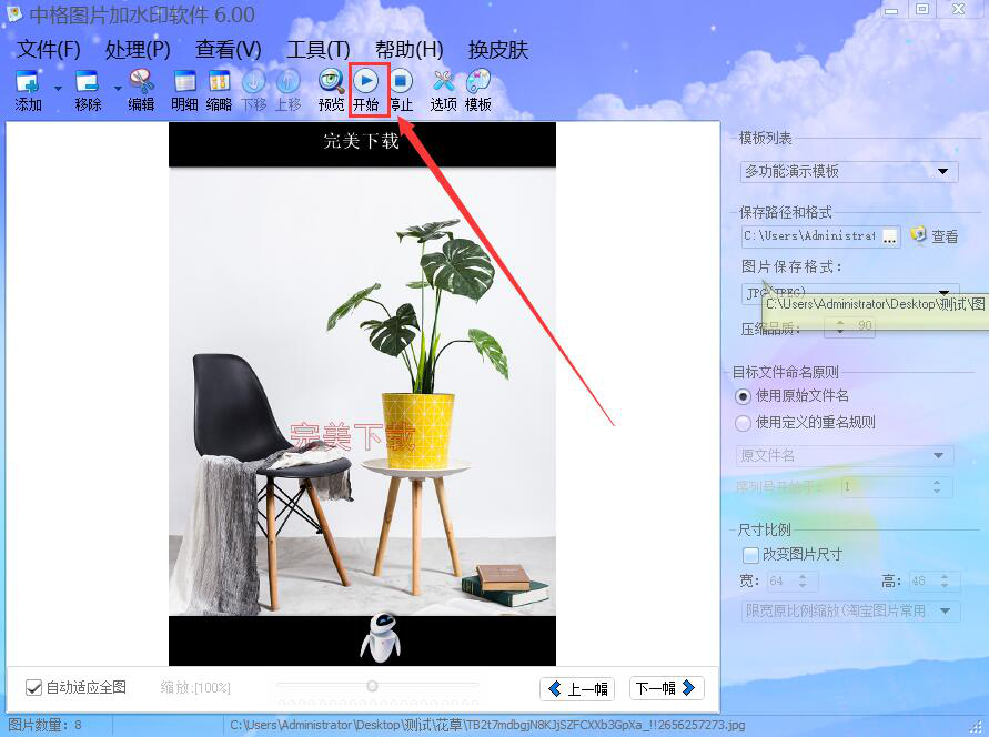 很多人拍完精美的图片后,想将它们上传到网站分享自己的作品,可是又担心自己辛辛苦苦拍的图片被别人轻易盗用变成了他人的作品。为了解决这一问题,我们可以使用中格图片加水印软件批量给图片添加水印。考虑到很多人没接触过该软件41. 分手后不要回头,就算那段感情再甜蜜它也只是一个曾经。,下面就为大家分享中格图片加水印软件批量给图片添加水印的教程。  中格图片加水印软件如何批量给图片添加水印? 1、首先,我们打开中格图片加水印软件,点击界面左上方的“添加”按钮。  2、在弹出的窗口中,我们选择需要批量添加水印的图片文件夹,并点击“确定”按钮,将其导入中格图片加水印软件。  3、然后,我们回到中格图片加水印软件操作界面。如果保存路径需要更改,就点击如下图的“…”按钮。  4、此时,中格图片加水印软件便会弹出浏览文件夹的窗口,我们选择批量添加了水印后的图片的输出文件夹,再点击“确定”按钮。  5、接下来,我们在中格图片加水印软件右侧界面中选择水印模板,再点击功能栏“模板”中的“编辑当前模板”选项。  6、进入中格图片加水印软件的模板编辑器操作界面,我们根据自己的需要设置水印的文字内容、格式、位置等等,如下图所示。  7、给图片批量添加的水印的模板编辑好了后,我们点击界面右上方的“×”关闭按钮,便会弹出如下图的窗口提示,我们直接点击“是”按钮,将模板保存。  8、最后,我们点击功能栏中的“开始”按钮,中格图片加水印软件便开始为图片批量添加水印。完成之后,会自动打开图片的保存路径,从而查看图片的处理效果。  图片的数量比较多,没有必要一个个添加水印,我们可以使用中格图片加水印软件给图片批量添加水印。这样一来,不仅可以防止别人随意盗用图片,还可以提高图片的处理效率。 中格图片加水印软件如何批量给图片添加水印?防止图片被盗用防自圆鹤立鸡群其说不胜防12. 人生路上,你我都是过客,来去皆是缘分。也许,某年某月的某一天,某条街上,一个熟悉的背影出此刻我的视线,也正好蓦然回首,却不是你的脸,只是恰似你的温柔。85. Good listening can show respect, promote understanding, and improve interpersonal relationship.(2008.江苏)199.忽如一夜春风来,千树万树梨花开。《白雪歌送武判官归京》 明朝事与孤冷,做满湖风雨愁人。山黛暝,尘波澹绿无痕。夫婿轻薄儿,新人美如玉。中格图片加水印软件,水印,图片加水印3、A bosom friend afar brings a distant land near. |