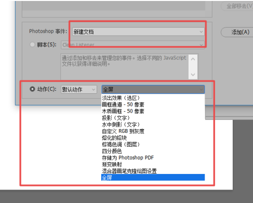 日常使用Photoshop进行图片处理,为了方便操作,很多老用户会通过脚本事件管理器来执行31. 恋情是生命的全部,失恋是恋爱的前提,她会让我心动,但不会让我死心,我要好好的活下去,前面有更好的风景。命令,用于实现一些重复操作或者批处理。如果你是刚刚接触Photoshop,不知道如何创建脚本命令,可以参考本文说明。 PS脚本事件管理器如何使用? Photoshop脚本事件管理器是什么?简单来说,用户触发一些命令动作,Photoshop监听到了这些动作,即会执行设置的相应脚本或者动作。相当于触发一个事件,程序一个命令就会自动执行,多用于执行一些重复性的机械化操作或者批处理。高级的运用需要会脚本编程。 打开Photoshop软件,进入界面,如图,点击【自定】,新建一个文件,  进入PS操作窗口,在上方菜单栏点击【文件】——【脚本】——【脚本事件管理器】,  出现弹窗,勾选【启用事件以运行脚本/动作】,现在可以创建脚本事件,  在下方点击【脚本】或者【动作】,例如设置Photoshop事件为启动应用程序,那么就会执行一个淡出效果的动作,  现在来做一个打开全屏模式的脚本事件,要先记录全屏动作,在PS菜单栏点击【窗口】——【动作】,出现弹窗,设置名称为【全屏】,新建动作,  要想插入菜单栏上的项目动作,系统是无法记录的,需要插入菜单项目,然后点击全屏模式,      添加全屏动作完成,停止动作,打开脚本事件管理器,选择Photoshop事件为新建文档,设置动作为【全屏】,点击【添加】——【完成】,    现在新建文档,看看是不是全屏模式,如图,已经打开了全屏。   了解更多精彩教程资讯,关注wmzhe.com。 PS脚本事件管理器如何使用?高级玩家必备技巧春三人行必有我师心惊肉跳风化雨47. 这句话仿佛是一束温暖的阳光直射我的心田,抚慰了我受伤的、幼小的心灵。不言而喻,青春一去不复返。397.待到山花烂漫时,她在丛中笑。《卜算子?咏梅》 君且住,草草留君剪韭,前宵正恁时候。深杯欲共歌声滑,翻湿春衫半袖。等是有家归未得,杜鹃休向耳边啼。Photoshop,PS49、Life is a span. |