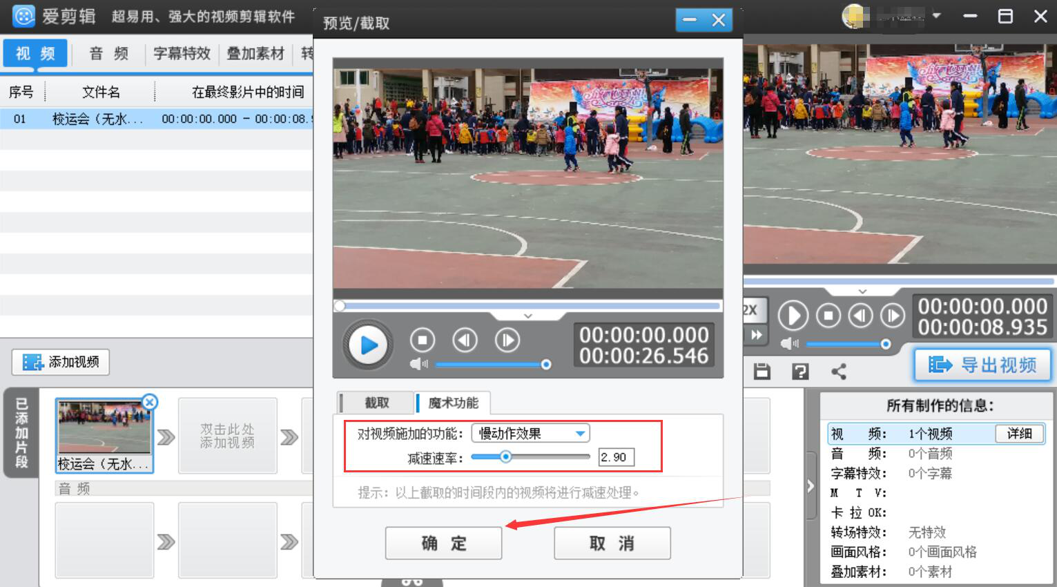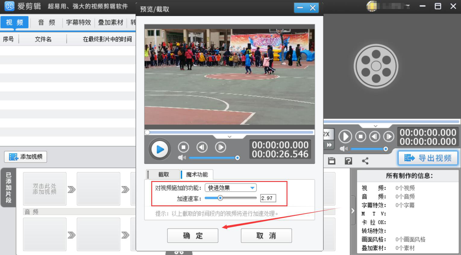 很多人拍完视频后,才发现视频的播放速度不够理想,要么太快了,让人听不明白视频说了什么;要么太慢了,让人听着很不耐烦。为了解决这一问题,我们可以用爱剪辑调节视频速度。考虑到很多没接触过该软件的人不懂操作,下面就为大家讲解爱剪辑如何调节视频速度。  爱剪辑如何调节视频速度? 1、首先,我们打开爱剪辑软件,在其界面的左侧点击“添加视频”按钮。  2、在弹出的窗口中,我们选择需要调节速度的视频,并点击“打开”按钮,将其导入爱剪辑。  3、然后,在爱剪辑弹出的预览/截取窗口中,我们切换至“魔术功能”选项卡。如果想要将视频的速度调19. 我的心曾是一座孤岛,寸草不生,你来之后,花木繁盛。节得快一些,就选择“快进效果”并调节加速速率,再点击“确定”按钮。  4、如果想要将视频速度调节得更慢一些,就在爱剪辑的魔术功能选项卡中,选择“慢动作效果”,并调节减速速率,再点击“确定”按钮。  5、接下来,我们回到爱剪辑的操作界面,点击“确定修改”按钮,确定刚才调节视频速度的操作,再点击“导出视频”按钮。  6、在爱剪辑弹出的导出设置窗口中,我们设置视频导出的名称、版权信息,再点击“浏览”按钮设置保存路径。  7、在爱剪辑弹出的保存路径中,我们选择调节速度后的视频的保存路径,再点击“保存”按钮。  8、最后,回到爱剪辑的导出设置窗口,点击“导出视频”按钮,被调节了速度的视频便会被保存到指定的路径。  无论视频播放速度太快还是太慢,都可以用爱剪辑来调节视频速度,让视频的播放速度更容易被人接受,从而带来更愉快的观影体验。 -