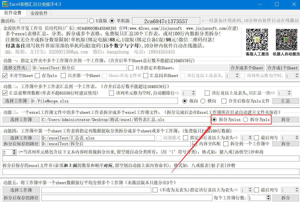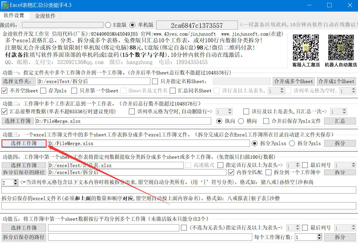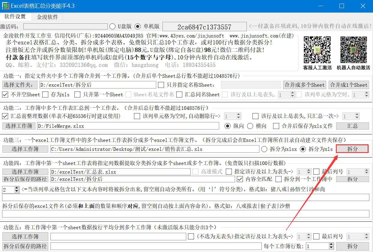 工作中,我们经常会收到很多Excel文件,往往一个Excel文件中就包含多个sheet工作表。可是,想要独立查看或对比数据时,会感觉不方便。为了解决这一问题,我们可以用Excel表格汇总分类能手拆分Excel文件,将多个sheet工作表拆分成多个Excel工作簿。考虑到很多人不懂操作,下面为大家讲解Excel表格汇总分类能手如何拆分Excel文件31. 红尘淡淡,人生如烟,一切的尘缘在冥冥之中都已注定,是喜是悲,都是要走过的,要经历的,我们要懂得;得之,我幸;失之,我命;坦然而过,谈定接受。。  Excel表格汇总分类能手如何拆分Excel文件? 1、首先,我们打开Excel表格汇总分类能手。在操作界面中可以看到它有两种拆分Excel文件的方式,本文以第一种拆分方式为例进行讲解,点击功能三中的“选择工作簿”按钮。  2、在弹出的窗口中,我们选择需要拆分的Excel文件,并点击“打开”按钮,将其导入Excel表格汇总分类能手。  3、然后,在Excel表格汇总分类能手操作界面中,我们根据自己的需要,选择Excel文件拆分的方式。  4、Excel文件拆分的方式选定后,我们点击它旁边的“拆分”按钮,Excel表格汇总分类能手便开始拆分Excel文件。  5、接下来,如果Excel文件拆分完成,在Excel表格汇总分类能手的操作界面下方状态栏会有相关的显示,如下图。  6、最后,我们在导入的Excel文件的源目录中便可以看到Excel表格汇总分类能手将Excel文件拆分为多个Excel工作簿了。  Excel表格汇总分类能手不仅能将一个Excel文件中的多个sheet工作表拆分为多个Excel工作簿,还能将Excel工作簿中的第一个sheet工作表指定的列数据提取出来,再分类拆分成多个sheet或者多个Excel工作簿。 -