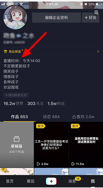 随着“直播卖货”方式的流行,无论你是从事电商,还是拥有实体店铺,都可以在抖音平台发起直播进行宣传推广,从而促进商品销售。以往,主播无法预告直播时间,导致很多粉丝错过直播,现在抖音新版本支持设置预告直播,抖音直播预告怎么弄? 抖音APP如何设置直播预告? 在手机中打开抖音APP,进入首页,点击底部的【+】,  进入拍摄窗口,如图,在下方功能栏点击【开直播】,  41. 分手后不要回头,就算那段感情再甜蜜它也只是一个曾经。如图,点击【设置】选项,弹出菜单,设置预告直播时间,选择【添加】,   设置直播时间,然后设置直播次数,例如每周日直播,如果需要每天直播,可以进行全选;另外,在下方还可以选择【显示在直播间贴纸中】、【显示在个人主页中】,点击保存,   设置完成,回到个人主页,如图,这里会有直播预告。  朋友们可以提前录制预告视频,然后设置直播时间,粉丝就不会错过你的直播了!了解更多精彩教程资讯,关注wmzhe.com。 抖音APP如何设置直播预告?提前通知粉丝,以免错过直播手足情林海雪原深和风细雨43. 人的一生中,都要经历很多件事。其中,不乏失败的事。面对失败,不同的人会有不同的态度。有些人一听说做什么事失败了,马上就一蹶不振,整天自暴自弃;而另一些人则不同,面对失败,他们总会积极的寻找失败的原因,重头再来。get close to 接近261.海阔凭鱼跃,天高任鸟飞。僧云览的诗中之句 沉沉江上望极,还被春潮晚急,难寻官渡。隐约遥峰,和泪谢娘眉妩。临断岸、新绿生时,是落红、带愁流处。记当日门掩梨花,剪灯深夜语。君不闻,汉家山东二百州,千村万落生荆杞!抖音,直播63、Clumsy birds have to start flying early. |