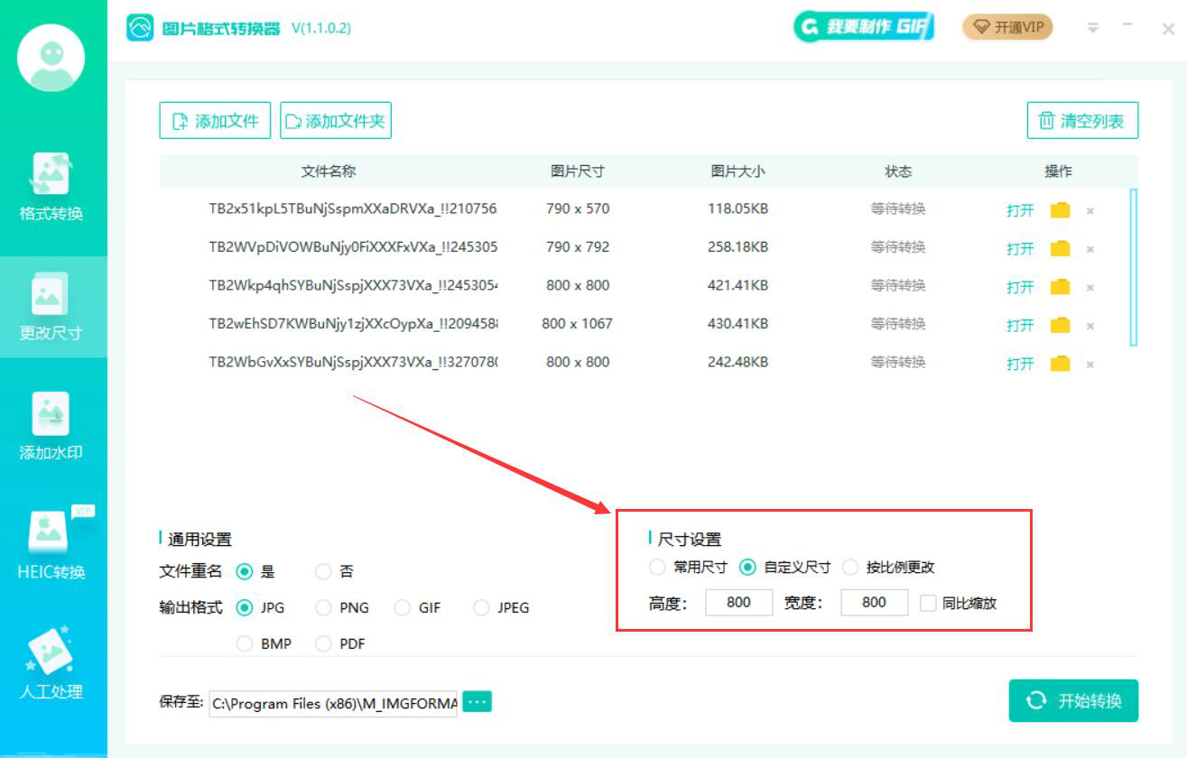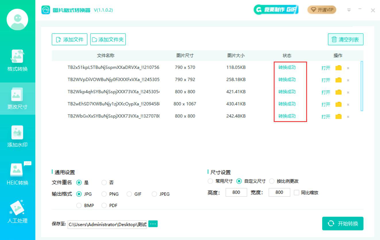 很多人拍完图片后,上传某些网站,才发现图片太大了,上传了好久都没上传完。就算是上传完的图片,打开时也是加载不出来。为了解决这一问题,我们可以用转转大师图片格式转换器批量更改图片尺寸。可能很多人都没用过该软件,所以,下面为大家讲解转转大师图片格式转换器如何批量更改图片尺寸。  转转大师图片格式转换器如何批量更改图片尺寸? 1、首先,我们打开转转大师图片格式转换器,点击切换至“更改尺寸”操作界面,并点击界面左上方的“添加文件夹”按钮。  2、在弹出的窗口中,我们选择需要批量更改尺寸的图片,并点击“确定”按钮,将其导入转转大师图片格式转换器。  3、然后,我们在转转大师图片格式转换器中,根据自己的需要设置图片批量更改尺寸后的文件重名和输出格式。  4、接下来,我们可以看到图片格式转换器有三种尺寸设置的方式,这里选择的是“自定义”,并且将高度和宽度都设置为800。  5、图片批量更改尺寸的文件重名、输出格式、尺寸都设置完成,如果保存路径需要更改,我们就点击图片格式转换器界面左下方的“…”按钮。  6、在图片格式转换器弹出的窗口中,我们选择图片批量更改尺寸后的保存路径,再点击“确定”按钮。  7、接着,我们点击界面右下方的“开始转换”按钮,图片格式转换器便开始批量更改图片的尺寸。  8、最后,当状态栏中全部显示转换成功,那说明图片格式转换器已经批量更改图片尺寸,并将它们保存到指定的路径中了。  想要更改图片的尺寸,而且图片的数量比较多,无需一张张更改尺寸,我们可以用图片格式转换器批量更改图片尺寸,提高图3. 曾经以为过不去的,终究会过去。痛苦有时候是一种提升,否则,我们流的眼泪也就毫无意义。片处理的效率。 -