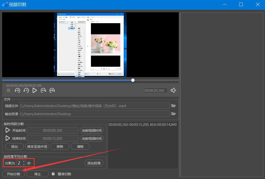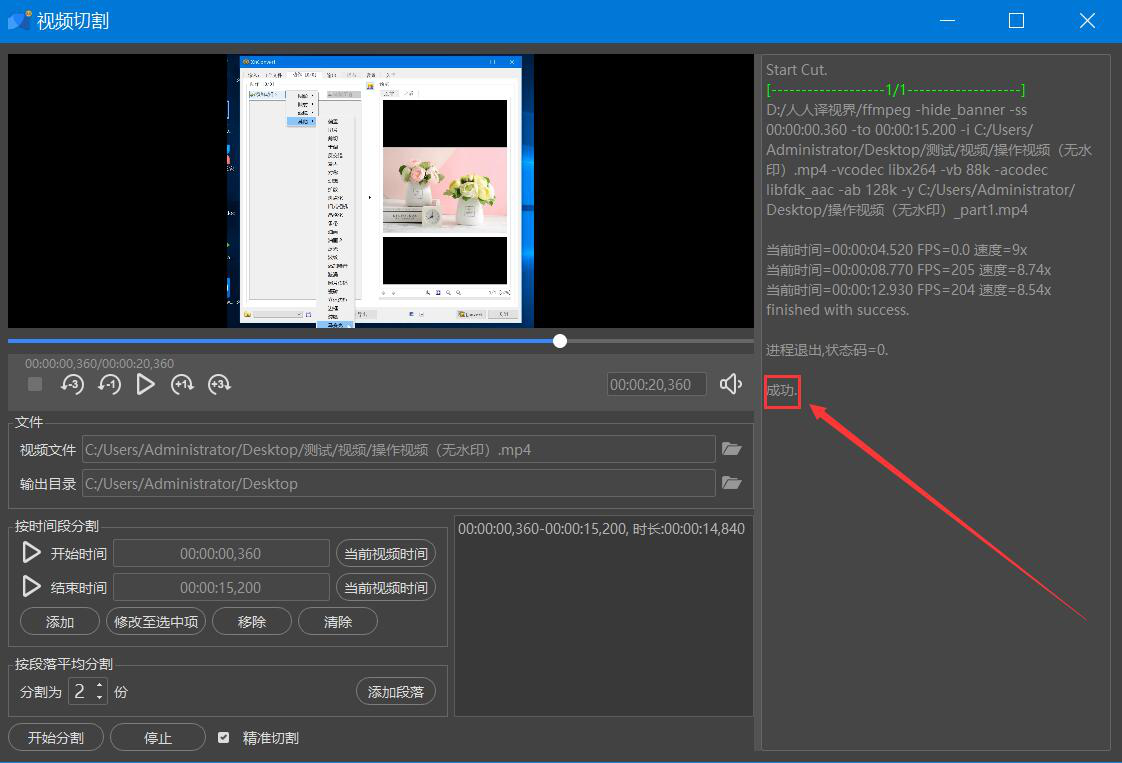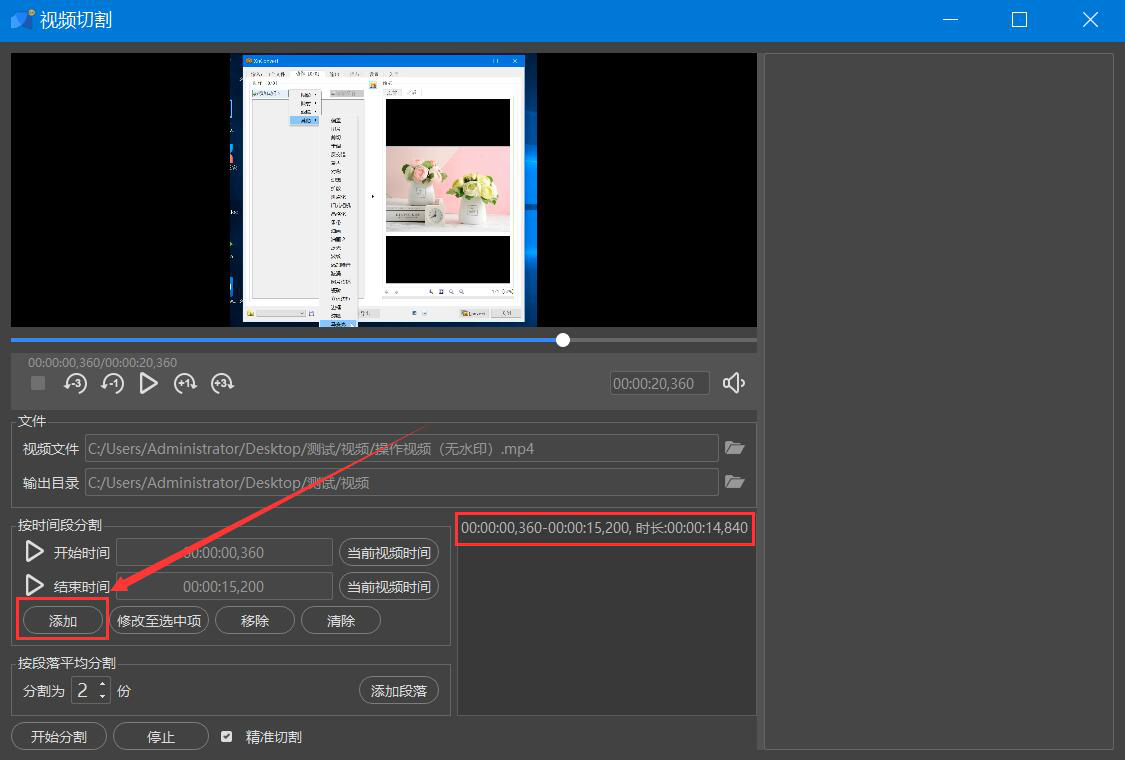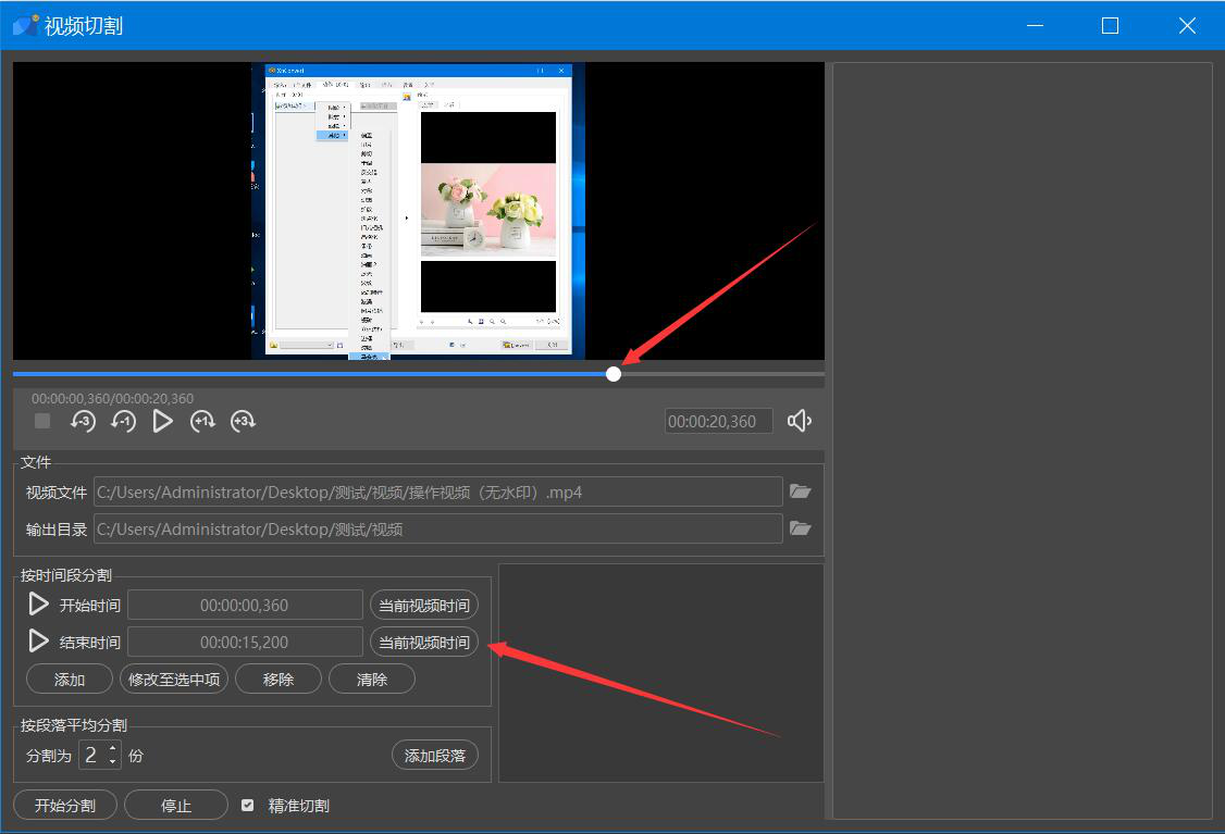 很多人录完视频后,才发现视频太长了,根本无法上传到某些网站,而且发送给在线好友的时候,经常会由于文件太大而无法成功发送。为了解决这一问题,我们可以用人人译视界软件切割视频,可是很多人不懂该如何操作,所以,下面为大家讲解人人译视界软件如何切割视频。  人人译视界软件如何切割视频? 1、首先,我们打开人人译视界,先点击切换至“小工具”菜单,并在功能列表中点击“视频切割”选项。  2、进入人人译视界的视频切割操作界面后,我们点击“打开本地文件”按钮。  3、然后,在弹出的窗口中,我们选择需要人人译视界切割的视频文件,再点击“打开”按钮。  4、回到人人译视界的视频切割操作界面,我们先来设置切割的开始时间,按住鼠标在时间轴上确定视频切割的开始时间,再点击“当前视频时间”按钮。  5、同样的方法,我们在时间轴上拉动切割按钮,确定视频切割的结束时间,再点击“当前视频时间”按钮。  6、设置视频切割的开始时间和结束时间后,我们还要点击“添加”按钮,确定将该片段的视频切割出来。同时,我们可以看到切割后视频的时长,如下图。  7、接下来,如果视频切割后默认的输出目录需要更改,就在人人译视界的界面中,点击如下图的文件夹图标按钮。  8、此时,人人译视界便会弹出选择目录窗口,我们选择视频切割后的保存路径,再点击“选择文件夹”按钮。  9、此外,我们还需要根据自己的实际需要,选择视频分割的份数,再点击“开始分割”按钮,这里选择用人人译视界将视频平均分割为2份,如下图。  10、最后,当界面右侧的状态栏中显示“成功”的字眼提示时,说明人人译视界成功地将视频切割了,并将它保存到指定的路径中了。  视频文件太长了?无法上传,也无法发送给在线好友,就可以用人人译视界将视频平均分割成若干份。视频被分割后,无论是上传还是在线发送都可以实现了。 -