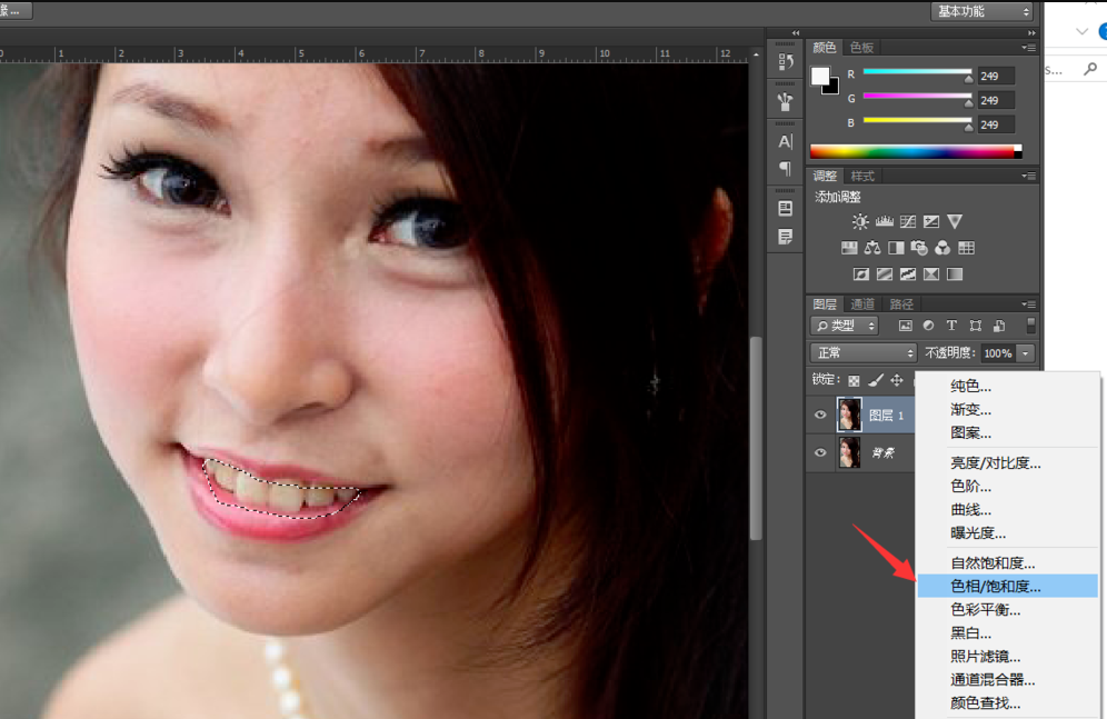 出去旅游拍了不少照片,很多人将照片发到朋友圈之前一定要先修图,除了进行面部处理(美白皮肤、消除斑点),有时候还需要美白牙齿。如何使用Photoshop美白牙齿?详情请看文章说明演示。 PS如何美白人物牙齿? 打开Photoshop软件,进入界面,导入一张人物照,按快捷键【Ctrl+J 】,复制图层,  在左侧工具栏中点击套色工具,选择【套索工具】,  点击使用套索工具,将人物牙齿部分进行简单勾选,如图,  鼠标右击选中的区域,弹出菜单,选择【羽化】,设置羽化半径为两个像素,   然后点击面板右下角的添加图层按钮,选择【色相/饱和度】,添加一个调整图层,弹出属性面板,选中上方的抓手按钮,点击牙齿泛黄的部分,   选中牙齿泛黄的部分之后,依次调整【色相】、【饱和度】,设置最低数值,然后适当调整明度,最终效果如图所示。   想12. 说分手的时候不好吵闹。毕竟两个在在一齐那么久,分了他也会难过,只是他比较明智,不想束缚你的或他的明天。好聚好散,以后,还是朋友。学习更多的PS修图技巧和方法,大家可以持续关注wmzhe.com。 PS如何美白人物牙齿?PS人物美化技巧和风秋雨连绵细象征和平雨15. 雨改变了公园的情调,西北方向的云雾之中,是水墨画似的远山,这在园林建筑中颇被称道的“借”来。随着日益迅速的经济发展,更多的问题受到我们的关注。274.碧云天,黄叶地,秋色连波,波上寒烟翠.山映斜阳天接水,芳草无情,更在斜阳外! 黯乡魂,追旅思,夜夜除非,好梦留人睡。明月楼高休独倚。酒入愁肠,化作相思泪。《苏幕遮?碧云天》 萋萋芳草忆王孙,柳外楼高空断魂,杜宇声声不忍闻。欲黄昏,雨打梨花深闭门。三分割据纡筹策,万古云霄一羽毛。PS,PhotoshopThe arguer may be right about …, but he seems to neglect (fail) to mention (take into account) that fact that… |