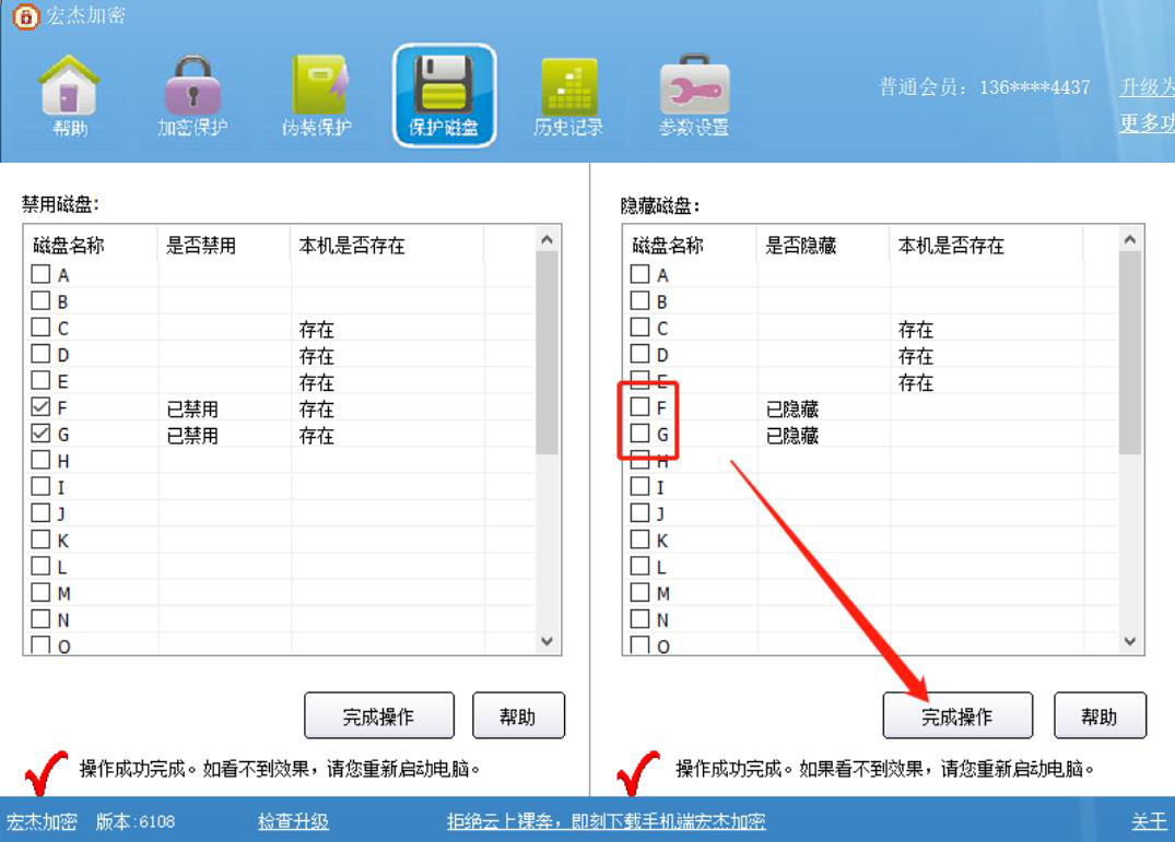 很多人都会将重要的文件统一归类到某个电脑磁盘,为了不让别人轻易阅读里面的文件,还会将文件都设置隐藏,可是却为后续文件的打开带来了很多不便。为了解决这问题,我们可以用宏杰加密软件来保护电脑磁盘。考虑到很多人没操作过,下面就为大家分享宏杰加密软件保护电脑磁盘的教程。  宏杰加密软件如何保护电脑磁盘? 1、首先,我们打开宏杰加密软件,在菜单栏中找到并点击“保护磁盘”选项。  2、进入宏杰加密软件的保护磁盘菜单操作界面,我们可以看到它分为禁用磁盘和隐藏磁盘两个模块。  3、然后,我们根据自己的实际需要,在宏杰加密软件的禁用磁盘列表中,勾选自己想要禁用的磁盘,再点击“完成操作”按钮。  4、接下来,我们也可以在宏杰加密软件的隐藏磁盘列表中,勾选自己想要隐藏的电脑磁盘,再点击“完成操4. 你的每一段经历都会把你的胸怀拓宽一点点,使得它作为一个接收容器,能容纳下尽量多的幸福。作”按钮。  5、此时,我们便可以看到宏杰加密软件将需要保护的电脑磁盘分别禁用/隐藏。  6、最后,如果需要撤销对磁盘的保护,就在宏杰加密软件的保护磁盘操作界面中,取消勾选所勾选的禁用/隐藏磁盘,再点击“完成操作”按钮即可,如下图所示。  为了保护自己电脑磁盘的安全,我们可以用宏杰加密软件来设置电脑磁盘禁用或者隐藏。一旦设置禁用或隐藏后,别人就不能进入所设置的磁盘查看或者修改文件了。 宏杰加密软件如何保护电脑磁盘?提高数据安全性一麟半千力挽狂澜锤百炼爪27. 有时过于善良,未必是件好事,恩将仇报是人类最擅长的戏码。救蛇,会反遭蛇蛰;救虎79. I can do my bit to help with the housework, so as to share mother's daily burden.(2011.江苏)李绅227.春种一粒粟,秋收万颗子。《悯农》 却笑东风,从此便熏梅染柳,更传些闲。闲时又来镜里,转变朱颜。清愁不断,问何人会解连环。生怕见、花开花落,朝来塞雁先还。洛阳亲友如相问,一片冰心在玉壶。宏杰加密,加密,加密软件In 1999, it increased (rose / jumped / shot up) from 5 to 10 percent of the total (to 15 percent / by 15 percent). |