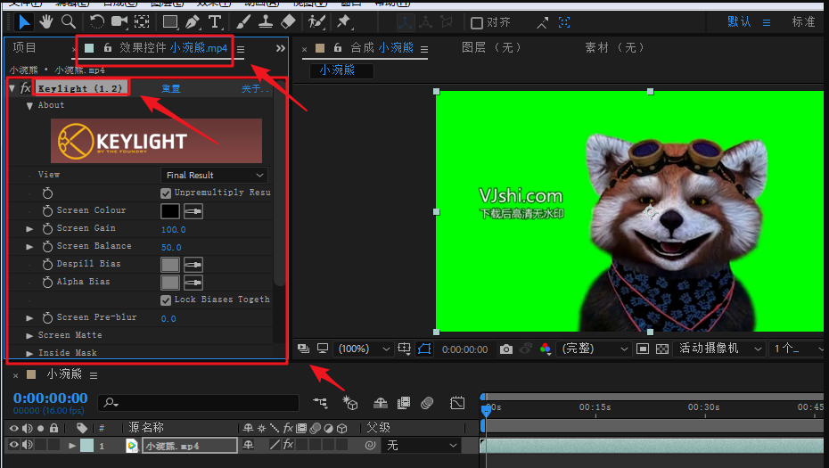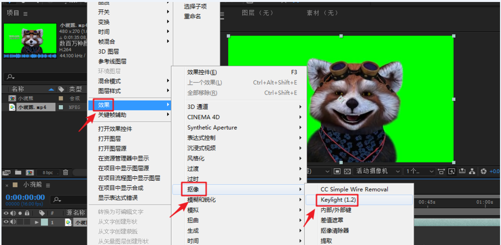 影视剧拍摄过程中经常会用到“绿布抠像”的摄影手法,演员站在绿布前面拍摄动作,后期剪辑环节通过抠像进行背景替换,即成功制作视频。很多人不知道如何抠取绿幕视频,今天小编就来支招,给大家介绍使用AE软件进行绿布抠像的方法。 Adobe After Effects如何进行绿幕视频抠像? 打开Adobe After Effects软件,进入界面,在上方菜单栏点击【文件】——【导入】——【文件】,或者直接点按快捷键【Ctrl+I】,导入视频素材,  文件导入之后,选中视频素材,按住鼠标不放,将视频拖放到时间轴,从而新建一个合成文件,  新建合成之后,点击该视频,鼠标右键,弹出菜单,选择【效果】——【抠像】,找到【keylight】选项,   点击【keylight】,此时查看【效果控件】一栏,这里出现了刚才选择keylight功能,  如图,点击最上面的第一个吸管,然后选择视频,对需要抠除的部分进行吸取,大家可以根据需要将场景【view】进行选择,  有些细节处理不是很细致,需要进一步操作,找到【screen matte】,在里面调整第一和第二个的参数,  至此,视频抠像已经基本完成了,可以将需要替换的背景导入进来或者新建一个背景,这里小编演示直接新建一个纯色图层,点击素材面板,鼠标右键,选择【新建】——【纯色】,  新建纯色图层之后,点击该图层,按住鼠标不松手往下拖拽,将背景图层置于抠像图层的下方,如图,绿幕视频抠像完成。  了解更多精彩教程资讯,关注wmzhe.com。 - 翠竹黄花拼音:cuì zhú huáng huā释义:指眼前境物。出处:宋·释道原《景德传灯录·慧海禅师》迷人不知法身无象,应物现形,遂唤青青翠竹,总是法身;郁郁黄华,无非般若。黄华若是般若,般若即同无情;翠竹若是法身,法身即同草木。”示例:无