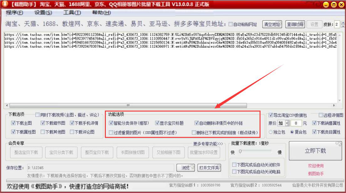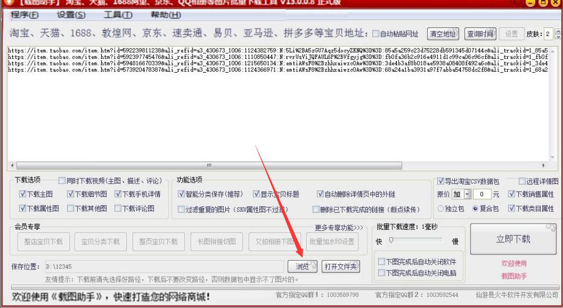 很多人在设计淘宝店铺的产品图前,都会先将一些优秀店铺的淘宝商品图片下载下来,供自己设计时候参考。如果图片比较多,一张张下载,那太浪费时间。为了解决这问题,我们可以用截图助手来下载淘宝商品图片,它不仅下载速度快,还会自动分类图片。可是很多人不懂操作,所以,本文来讲解载图助手如何下载淘宝商品图片。  载图助手如何下载淘宝商品图片? 1、首先10. 没有经历过爱情的人生是不完整的,没有经历过痛苦的爱情是不深刻的。爱情使人生丰富,痛苦使爱情升华。,我们可以从本站下载截图助手,安装完成后打开其操作界面。  2、然后,我们将需要载图助手下载的淘宝商品图片的地址分别粘贴到文本框中,要注意一行粘贴一个商品地址,如下图所示。  3、接下来,我们可以根据自己的需要设置截图助手下载淘宝商品图片时所下载的图片类型。  4、除此之外,还可以在截图助手的功能选项中,设置下载淘宝商品图片时,是否自动删除详情页中的外链等等。  5、如果,截图助手下载淘宝商品图片时默认的保存位置需要更改,就点击“浏览”按钮。  6、在截图助手弹出的浏览文件夹窗口中,我们选择淘宝商品图片下载完成后的保存路径,再点击“确定”按钮。  7、接着,我们点击界面右下方的“立即下载”按钮,截图助手便会批量下载淘宝商品图片。  8、我们可以在界面下方实时看到截图助手批量下载淘宝商品图片的具体进度。  9、最后,截图助手将淘宝商品图片下载完成后,会自动跳转到我们刚才设置的保存路径,如下图所示。  想要一次性下载多个淘宝商品的图片,就可以用截图助手来实现。它下载的速度非常快,而且下载后会根据图片的属性分类存放。 -