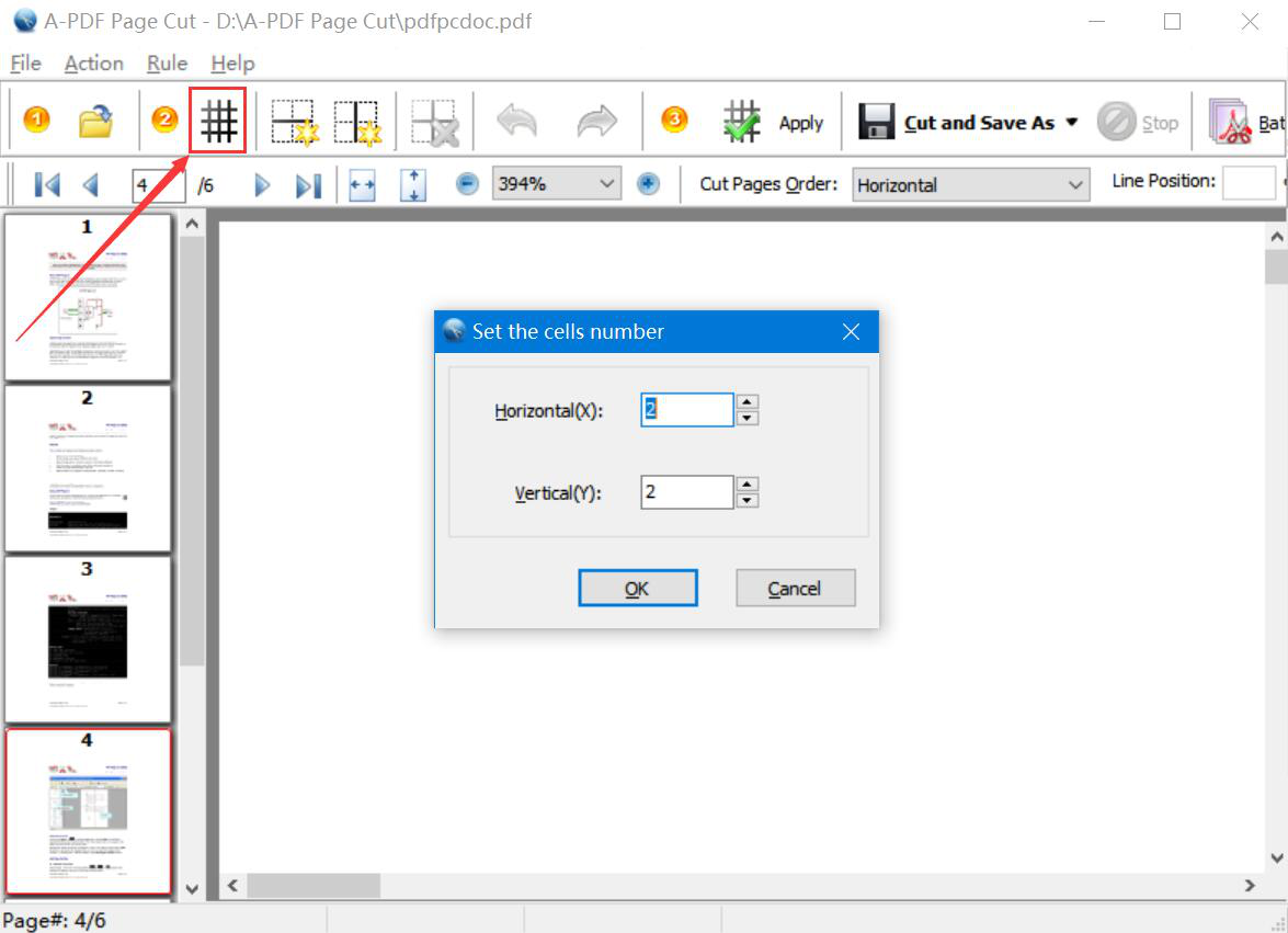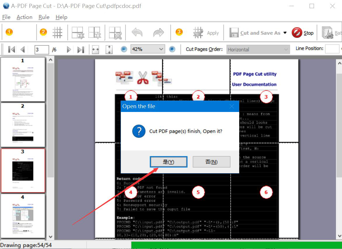 很多人在阅读PDF文件时,有些PDF文件的页面内容是以不同的模块来展示的。为了阅读的方便,很多人想对PDF文件进行分割,让内容都变成单独的一个个小模块。而切割PDF文件,我们可以用A-PDF Page Cut。只是很多人不懂如何操作,所以,下面为大家讲解如何使用A-PDF Page Cut切割PDF文件。  如何使用A-PDF Page Cut切割PDF文件? 1、首先,我们打开A-PDF Page Cut操作界面,点击界面左上方的“打开”文件夹图标按钮。  2、在弹出的窗口中,选择需要A-PDF Page Cut切割的PDF文件,并点击“打开”按钮。  3、然后,点击A-PDF Page Cut功能栏中的“Add Grid”按钮,便会弹出如下图的PDF文件切割设置窗口。  4、我们根据自己的需要设置PDF文件水平切割和垂直切割的数目,这里,我们设置将整个页面水平和垂直方向各切割3等份,设置好了,点击“OK”按钮。  5、接下来,我们便可以预览A-PDF Page Cut切割PDF文件的效果,如下图所示,一共被分成了六等份。如果确定PDF切割的方式不更改的话,就点击功能栏中的“Apply”按钮。  6、此时,A-PDF Page Cut会弹出如下窗口,我们根据自己的需要选择该切割方式所应用的页面范围。可以应用于所有页面,也可以应用于当前页面。例如,这里,我们选择的是“All Pages”,应用于PDF文件所有页面,再单击“Apply Now”按钮。  7、PDF文件切割的方式和页面范围都设置好了,我们点击A-PDF Page Cut功能栏中的“Cut and Save As”按钮。  8、随后,在A-PDF Page Cut弹出的另存为窗口中,我们选择PDF文件切割后的保存路径,再点击“保存”按钮。  9、最后,如果弹出如下图窗口提示,则说明A-PDF Page Cut成功地切割了PDF文件,并将它保存到指定的路径中了。我们直接点击“是”按钮即可。  想要将PDF文件切割成若干个小部分,方便自己阅25. 不要再执著于过去的失恋了。执著于过去的失恋,你还将品尝新的失恋或单恋的滋味。读,就可以用A-PDF Page Cut切割PDF文件。一般来说,A-PDF Page Cut切割PDF文件时,会将水平、垂直切割的份数设置相同,这样切割出来的PDF文件更美观。 -