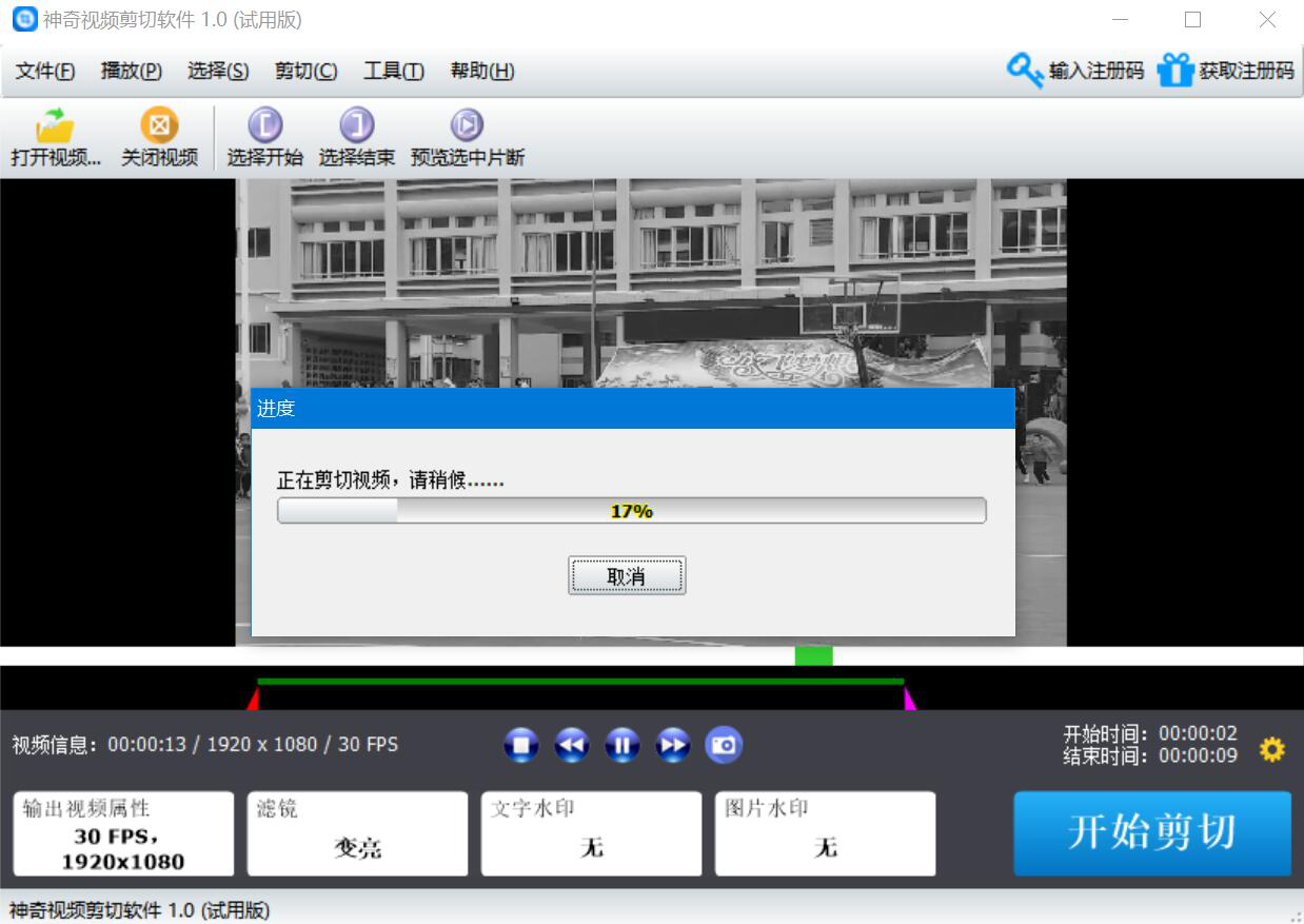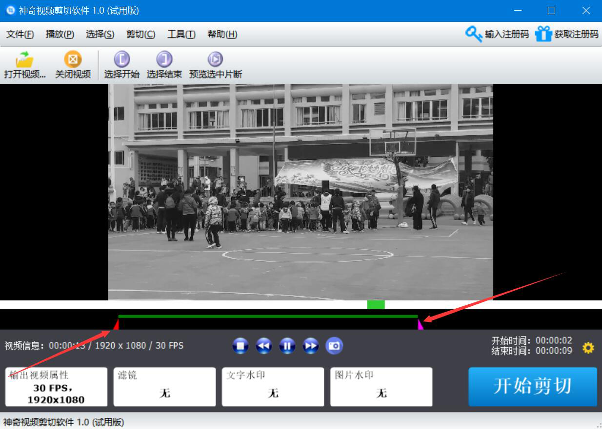 很多人在处理视频的时候,才发现视频中真正能用上的可能就只有一个片段,可是又不愿意再花资源去重拍视频。为了解决这一问题,我们可以用神奇视频剪切软件剪切视频。虽然操作简单,但是很多人没操作过,所以,下面为大家讲解如何用神奇视频剪切软件剪切视频。  神奇视频剪切软件如何剪切视频? 1、首先,我们打开神奇视频剪切软件的操作界面,点击左上方的“打开视频”按钮。  2、在弹出的窗口中,选择需要神奇视频剪切软件剪切的视频,并点击“打开”按钮。  3、然后,回到神奇视频剪切软件的操作界面。按住鼠标左右拉动视频预览下方的红色和紫色三角形剪切器来选取需要剪切的视频片段,如下图所示。  4、此外,我们还可以根据自己的需要设置神奇视频剪切软件剪切视频后是否添加滤镜、文字水印、图片水印。  5、视频剪切的片段、效果都设置好了后,我们可以点击界面上方的“预览选中片段”来预览所选片段是否正确,如果正确,就点击界面右30. 你可以把余生,都交给我保管,可以霸占我情话里的,每一句喜欢。下方的“开始剪切”按钮。  6、此时,神奇视频剪切软件会弹出另存为的窗口。我们选择视频剪切后的保存路径,再点击“保存”按钮。  7、接下来,我们便可以在进度窗口中实时了解到神奇视频剪切软件剪切视频的具体进度,如下图所示。  8、最后,窗口显示“任务完成”,则说明神奇视频剪切软件成功地剪切了该视频。我们点击“打开文件位置”按钮就可以看到剪切好的视频片段了。  拍摄的视频太长,可只需要使用视频中的某个片段,就可以用神奇视频剪切软件来剪切视频。而且它非常人性化,还可以为剪切的视频添加滤镜或者水印。 -