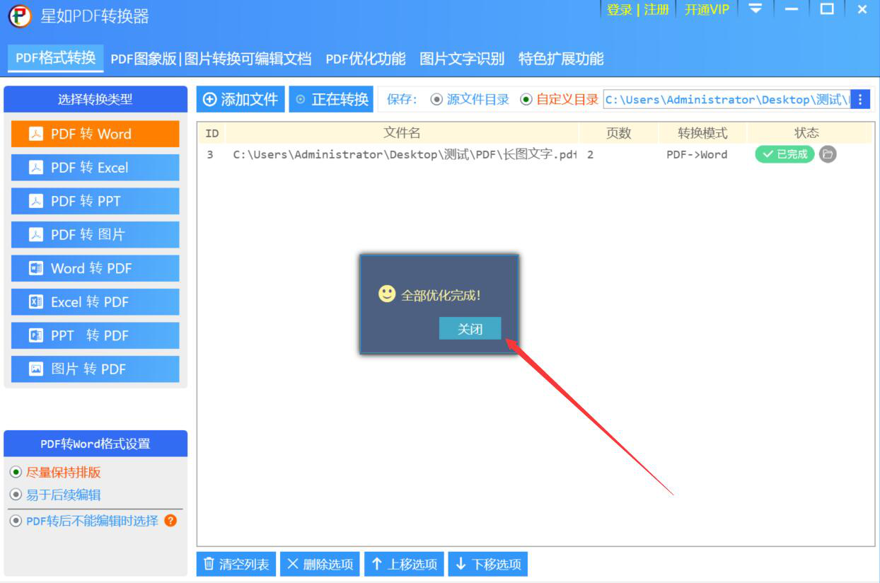 工作中,我们经常会收到对方发来的PDF文件,虽然可以直接阅读,但是不支持直接编辑。想要修改文件,还得转换成我们常用的word,可有些人不懂用什么来转换。其实,我们经常会用星如PDF转换器将PDF转word。那么具体怎么操作呢?下面就来为大家讲解星如PDF转换器如何将PDF转Word。  星如PDF转换器如何将PDF转为Word? 1、首先,我们打开星如PDF转换器。在转换类型中点击切换至“PDF转Word”操作界面,并点击界面上方的“添加文件”按钮。  2、在弹出的窗口中,我们将需要转Word的PDF文件选43. 纵然有再多安慰你的话,但是真正可以使你从失恋中跳脱出来的还是得靠你自己的豁然开窍。中,并点击“打开”按钮,将其导入星如PDF转换器。  3、然后,回到星如PDF转换器。在界面左下方的PDF转Word格式设置中,我们根据自己的需要来选择,这里选择的是“尽量保持排版”。  4、如果PDF转Word的文件保存路径需要修改,就在星如PDF转换器中,点选“自定义目录”,并点击它旁边的“┇” 按钮。  5、接下来,在星如PDF转换器弹出的窗口中,选择PDF转Word后的保存路径,再点击“确定”按钮。  6、PDF转Word的格式和保存路径都设置好了后,我们点击界面上方的“开始转换”按钮,星如PDF转换器便开始将PDF转Word。  7、最后,当弹出如下图的提示窗口时,说明星如PDF转换器成功地将PDF转换为Word文档了,直接点击“关闭”按钮即可。  为了方便编辑PDF文件,我们可以用星如PDF转换器将PDF文件转换为Word文档,它不仅转换速度快,而且转换后的文档不会出现乱码的情况。 -