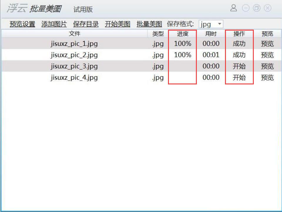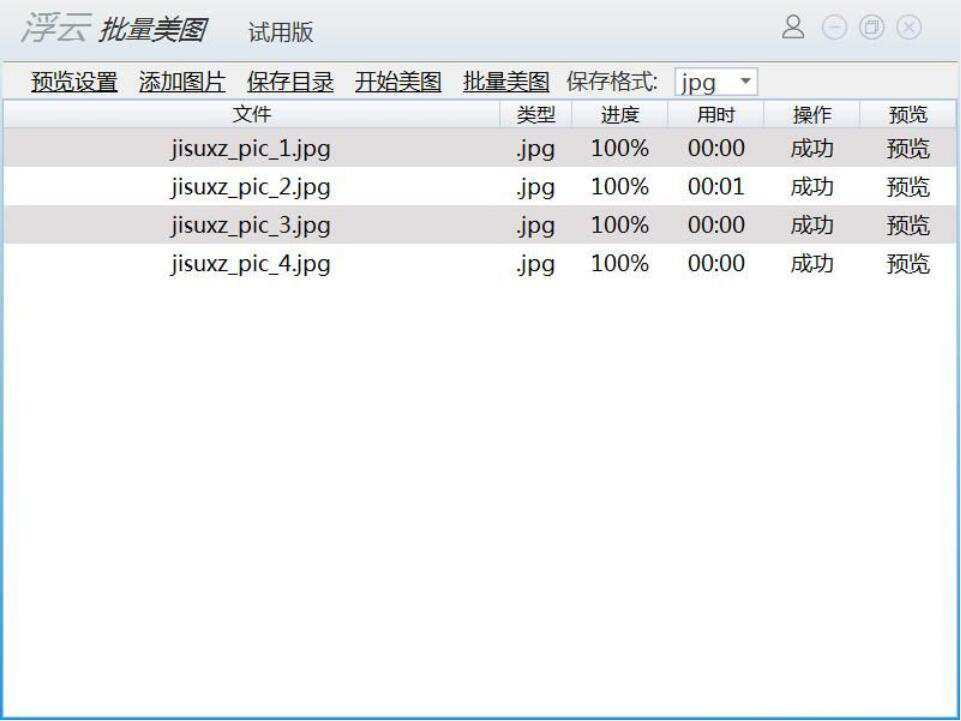 很多人在拍图片的时候,由于环境的影响,图片效果不尽人意。想要修图,可是又没有专业的修图技术,也没耐心一张张去抠图去优化。为了解决这问题,我们可以用浮云批量美图工具批量美化图片,它综合了多重美化功能,一键美化。只是很多人没操作过,下面就为大家讲解如何用浮云批量美图工具批量美化图片。  浮云批量美图工具如何批量美化图片? 1、首先,我们打开浮云批量美图工具,在其界面的左上方点击“添加图片”按钮。  2、在弹出的窗口中,将需要浮云批量美图工具美化的图片批量选中,并点击“打开”按钮。  3、然后,我们回到浮云批量美图工具操作界面,点击“保存目录”按钮,继续下一步操作。  4、此时,浮云批量美图工具会弹出浏览文件夹窗口,我们选择图片批量美化后的保存路径,再点击“确定”按钮。  5、接下来,我们回到浮云批量美图工具的操作界面,点击功能栏中的“开始美图”按钮,浮云批量美图工具便开始批量美化图片。  6、在浮云批量美图工具的操作界面中,我们可以实时了解到它批量美化图片的进度。如下图,可以从进度栏和操作栏中看到。  7、最后,当进度全部显示100%时,说明浮云批量美图工具批量美化图片成功。  没有修图基础?图片量多,一张张美化的话,太困难了。我们可以用浮云批量美图工具批量美化图片。它会智能地根据图片的情况来美化图片,非常地人性化,对于没有修图技术的人来说,它非常实用。 -
