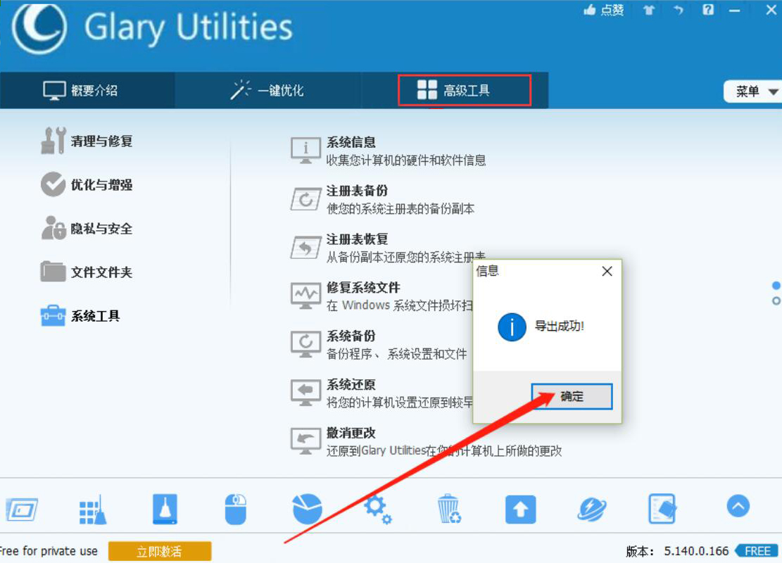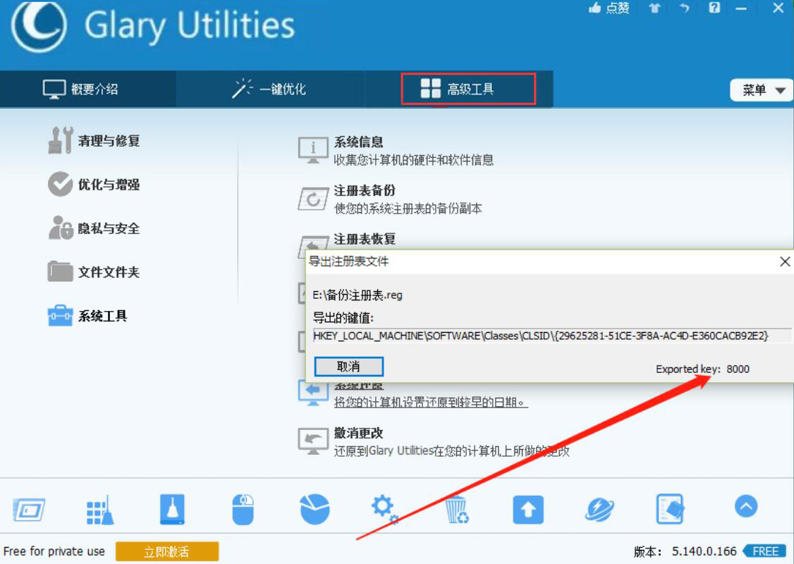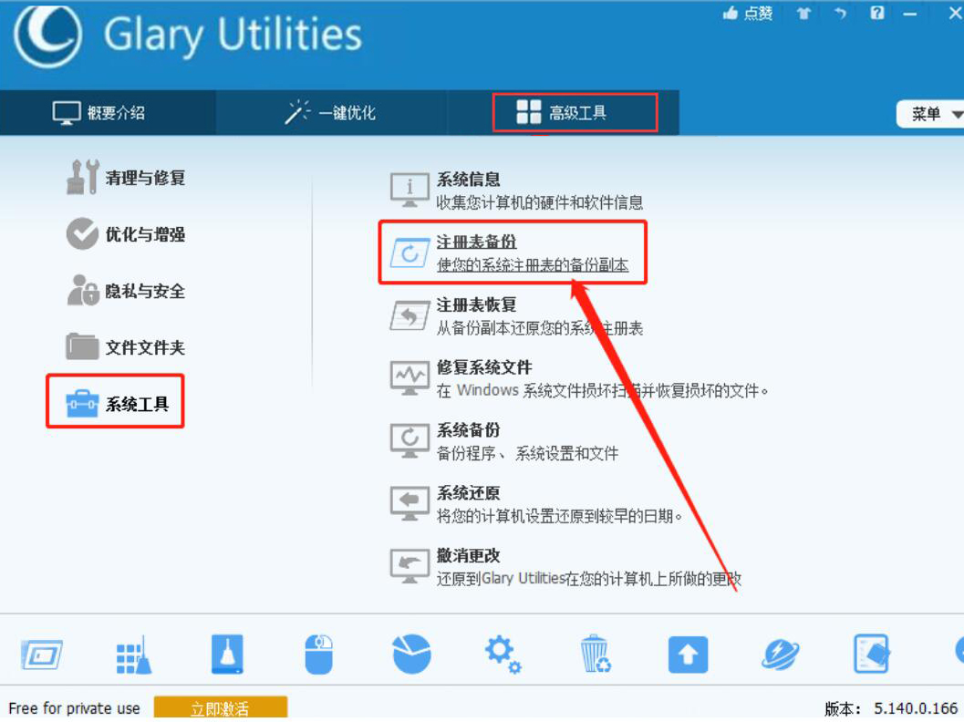 很多人在安装某些程序的时候注册表会遭到损坏,导致电脑系统无法正常运行,为了避免同类问题再次发生,我们可以用Glary Utilities Pro备份电脑注册表。因为注册表项目繁多且可读性差,一旦修改错误,出现不测,我们还可以通过备份来恢复。可是很多人不懂操作,所以,下面为大家讲解如何使用Glary Utilities Pro备份电脑注册表。  如何使用Glary Utilities Pro备份电脑注册表? 1、首先,我们打开Glary Utilities Pro软件,点击切换至“高级工具”操作界面。  2、然后,Glary Utilities Pro的左侧功能栏中,点击切换至“系统工具”功能页面,并从右侧列表中点击“注册表备份”选项。  3、此时会弹出另存为的窗口,我们选择注册表备份后的保存路径,并且对其重命名,方便日后查找,点击“保存”按钮,Glary Utilities Pro便开始备份注册表。  4、接下来,我们可以在弹出的“导出注册表文件”的小窗口中了解到备份注册表的情况,它会显示备份的键值数量。  5、当弹出如下图的信息窗口提示,则说明Glary Utilities Pro完成了注册表的备份。我们直接点击“确定”按钮即可。  6、最后,我们在刚才设置的保存路径中便可以看到使用Glary Utilities Pro备份的注册表了。  我们平时为了防止自己误删、误修改注册表,或者防止某些恶意软件篡改注册表,就可以用Glary Utilities Pro备份注册表,当注册表遭到损坏或者丢失时,都可以通过备份来恢复。 -