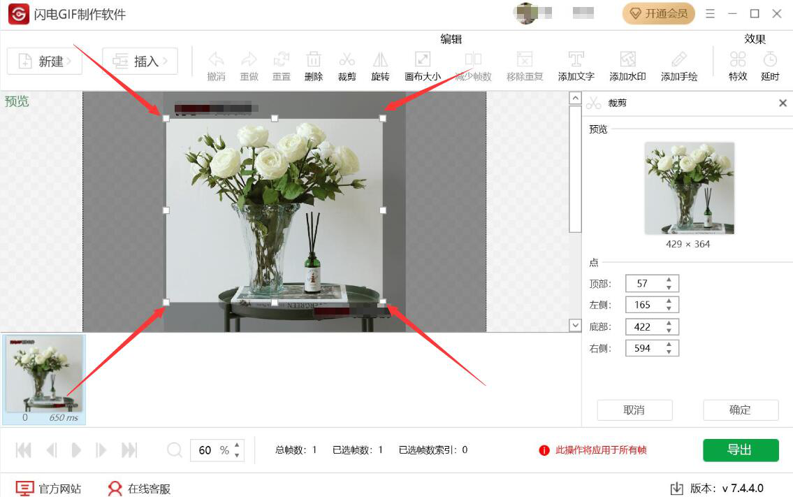很多人在用图片制作GIF动图的时候都没有太注意画面,往往会将一些不必要的画面也做进去了,可是自己又不愿意花更多的时间去重新制作GIF动图。为了解决这问题,可以用闪电GIF制作软件来裁剪GIF动图,保留需要的画面。可能很多人不懂操作,下面就为大家讲解闪电GIF制作软件如何裁剪GIF动图。  闪电GIF制作软件如何裁剪GIF动图? 1、首先,我们进入闪电GIF制作软件的操作界面。在界面左上方,点击“新建”菜单中的“添加文件”选项。  2、在弹出的窗口中,将需要裁剪的GIF动图选中,并点击“打开”按钮,将它导入闪电GIF制作软件。  3、然后,我们点击闪电GIF制作软件菜单栏中的“裁剪”按钮,进入GIF动图裁剪界面。  4、接下来,在GIF动图裁剪界面中,我们通过拉动选框中的几个白色句柄来选取需要裁剪保留的GIF动图画面。  5、要裁剪保留的GIF动图画面设置好了后,我们可以在闪电GIF制作软件的右侧裁剪界面中同步预览效果,如果确定要裁剪,就点击“确定”按钮。  6、我们回到闪电GIF制作软件的主界面,点击右下方的“导出”按钮。  7、此时,在右侧界面中会展示另存为的设置窗口。如果GIF动图裁剪后的导出路径要更改,就点击如下图的文件夹垂头铩羽拼音:chuí tóu shā yǔ释义:形容受挫后萎靡不振的样子。出处:《冷眼观》第五回正值宪太太发放那起不中用的家人出来,犹如斗败公鸡,一个个垂头铩羽,打从签押房门外经过。”示例:无图标按钮。  8、在弹出的窗口中,选择GIF动图裁剪后的保存路径,再点击“打开”按钮。  9、最后,如果弹出如下图的窗口提示,则说明闪电GIF制作软件不仅成功地裁剪了GIF动图,还将它保存到指定的路径了。  在做GIF动图的时候没有考虑周到,将一些不必要展示的画面都做进去了?没关系,我们可以用闪电GIF制作软件来裁剪GIF动图,保留自己想要的画面,而且裁剪后的GIF动图画质不会受到影响。 -