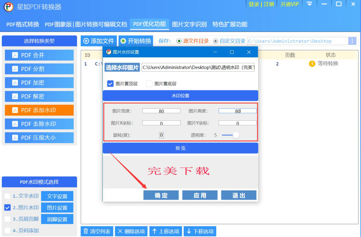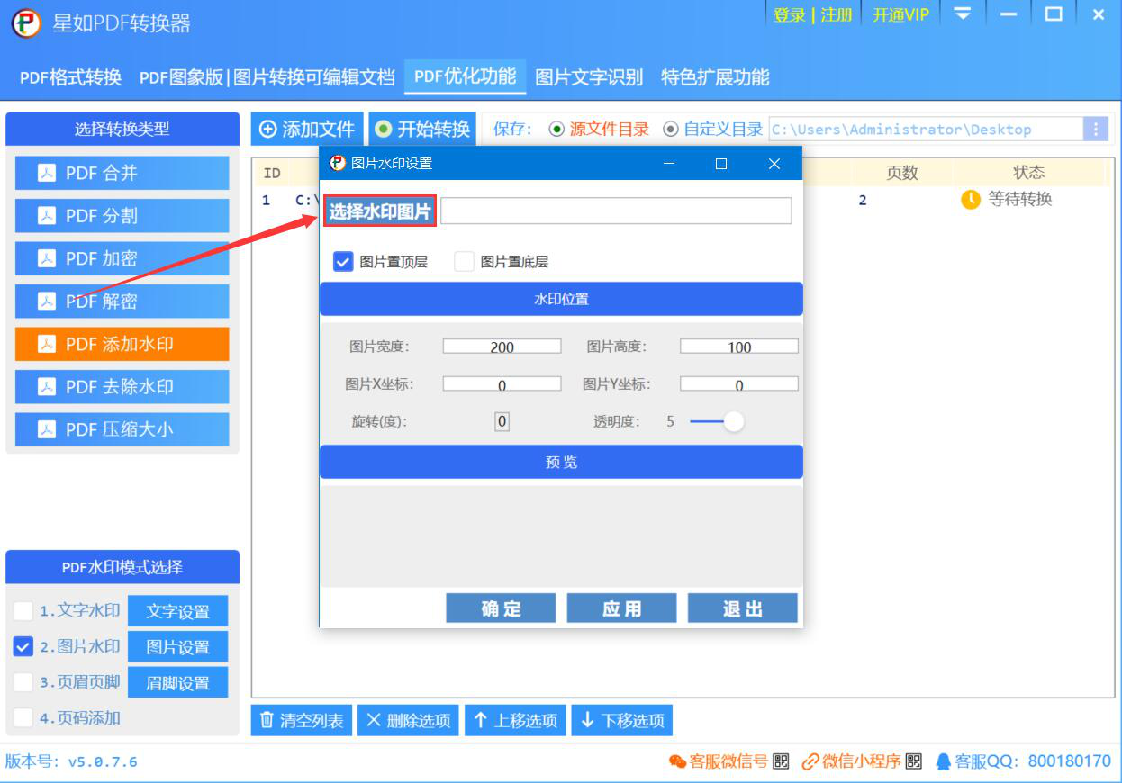 在工作中,我们经常会花比较多时间去做个PDF文件。有些数据是比较重要的,可是由于没有做任何的保护措施,搞得PDF文件被别人盗用。为了解决这问题,我们可以用星如PDF转换器给PDF文件添加水印。只是很多人可能还不懂怎么操作,所以,下面为大家讲解如何用星如PDF转换器给PDF文件添加水印。  星如PDF转换器如何给PDF文件添加水印? 1、首先,我们打开星如PDF转换器。先切换至“PDF优化功能”操作界面,在左侧的转换类型中点击“PDF添加水印”选项,并点击“添加文件”按钮。  2、在弹出的窗口中,将需要添加水印的PDF文件选中,点击“打开”按钮,将其导入星如PDF转换器。  3、然后,在星如PDF转换器的操作界面中,从左下侧的PDF水印模式中根据自己的需求来选择给PDF添加水印的模式。比如说,这里,我们要给PDF文件添加的是图片水印,就勾选“图片水印”,并点击“图片设置”按钮。  4、此时,星如PDF转换器便会弹出图片水印设置窗口。我们在该窗口中点击“选择水印图片”按钮。  5、接下来,继续在弹出的窗口中选择自己想要为PDF文件添加的图片水印,再点击“打开”按钮,将它导入星如PDF转换器。  6、根据自己的需11. 不从泥泞不堪的小道上迈步,就踏不上铺满鲜花的大路。要设置图片水印的位置,包括它的宽度、高度、透明度、方向,设置好了后,点击“确定”按钮。  7、接着,回到星如PDF转换器的操作主界面,点击“开始转换”按钮,星如PDF转换器便开始执行为PDF文件添加水印的命令。  8、最后,如果弹出窗口提示任务全部完成,就点击“关闭”按钮。从源文件目录中便可以找到我们刚才用星如PDF转换器给PDF文件添加水印的新PDF文件了。  为了PDF文件的数据安全,不轻易被别人更改或者盗用,都可以用星如PDF转换器给PDF文件添加水印。而且它非常人性化,可以添加文字水印、图片水印。 -