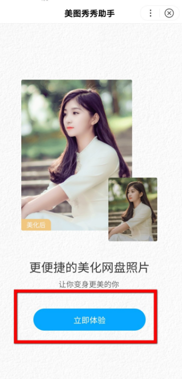 升级新版手机百度网盘,用户可以体验图片美化功能,你就不用再去下载安装修图软件,既可以节省时间,还省去了内存!百度网盘可以美颜图片吗?详情请看文章说明。 手机百度网盘如何美化图片? 在手机中打开百度网盘,进入界面,点击【常用服务】——【更多】选项,  进入服务列表蔽明塞聪拼音:bì míng sè cōng释义:蔽遮;聪听觉灵敏;明看得清楚。蒙住眼睛不看,堵塞耳朵不听。指对外界事物不闻不问。出处:宋·曾巩《洪范传》夫然,故蔽明塞聪,而天下之情可坐而尽也。”示例:无,点击【其他服务】——【图片美化】,  跳转至美图秀秀助手服务界面,点击【立即体验】,  进入手机相册,选择一张需要美颜的图片,  导入图片,点击下方【美颜】功能,  选择美颜级别,等待美颜完成,点击【√】,保存图片。  了解更多精彩教程资讯,关注wmzhe.com。 -
