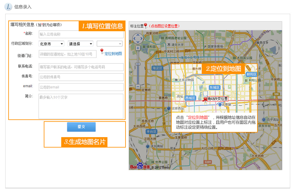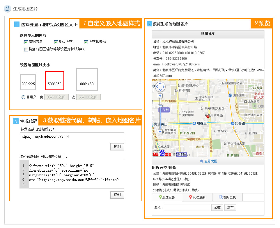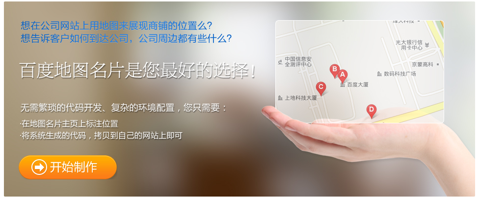 现如今,一系列地图软件陆续开放了标注权限,企业用户或者商家可以将自己的地理位置标注到地图上。今天小编要来介绍如何制作百度地图名片,无需编写代码,只需简单操作,即可在线制作包含企业信息和地图位置的名片。 如何制作百度地图名片? 打开浏览器,使用百度搜索引擎,进入百度首页,如图,点击上方【地图】标签,  打开百度地图,点击下方【地图开放平台】服务,  跳转至以下界面,点击【开发文档】,选择【地图名片】,  如图,点击【开始制作】,根据提示进行操作,  首先填写位置信息,点击图区设置位置,点击提交,  自定义嵌入地图样式,获取链接代码、转帖,嵌入地图名片。  打开一些网站或者网页,你会发现有一个在线地图之类的按钮,点击就会出现相关企业信息,甚至包括周边公车、地铁路线信息。了解更多51. 遇到你之前,世界是一片荒原,遇到你之后,世界是一个乐园,过去的许多岁月,对我像一缕轻烟,未来的无限生涯,因你而幸福无边。精彩教程资讯,关注wmzhe.com。 如何制作百度地图名片?嵌入企业、商铺位置数不胜宁静和谐呼啸而过数24. 自己把自己说服了,是一种理智的胜利;自己被自己感动了,是一种心灵的升华;自己把自己征服了,是一种人生的成功。86. People must be stopped from throwing dirty things into the river.115.非澹泊无以明志,非宁静无以致远。《诫子书》 近清明,翠禽枝上消魂。可惜一片清歌,都付与黄昏。欲共柳花低诉。怕柳花轻薄,不解伤春。衾楚乡旅宿,柔情别绪,谁与温存?君不见,青海头,古来白骨无人收。地图,百度地图58、All rivers run into the sea. |