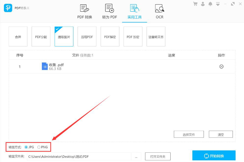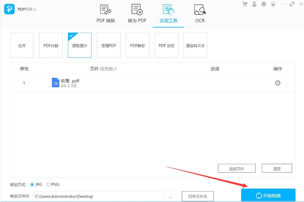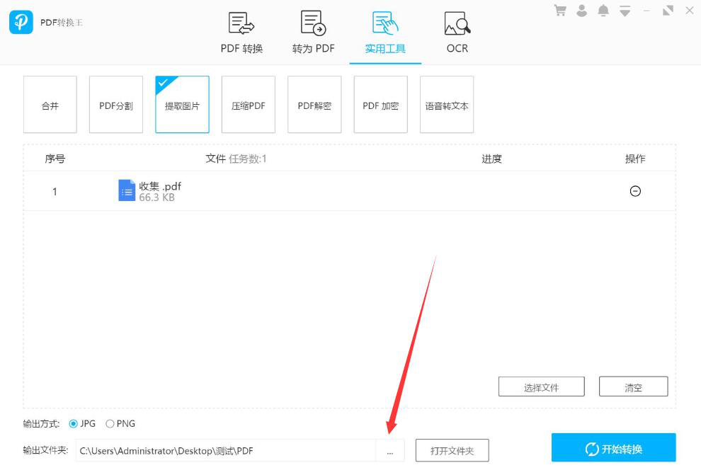 很多人在编辑文档之前,往往会先从网上下载相关的PDF文件资料。在编辑时,还经常会用到PDF中的图片。如果是通过截图的方式来获得PDF图片,就会发现图片像素被降低了,为了解决这问题,我们可以用PDF转换王来提取PDF图片。考虑到很多人不懂操作,所以,本文教导大家如何用PDF转换王提取PDF图片。  PDF转换王如何提取PDF文档图片? 1、首先,我们打开PDF转换王,切换至“实用工具”操作界面,分别点击“提取图片”选项和界面中部的“选择文件”按钮。  2、在弹出的窗口中,将需要提取图片的PDF文件选中,并点击“打开”按钮,将其导入PDF转换王。  3、然后,我们在PDF转换王的操作界面中,根据自己的需要选择PDF文件提取图片时图片输出的方式,这里选择的是JPG的格式。  4、如果PDF文件提取图片后的输出路径需要更改,就点击如下图的“…”按钮。  5、此时,PDF转换王便会弹出浏览文件夹窗口,我们选择PDF提取图片后的保存路径,再点击“确定”按钮。  6、接下来,我杯酒解怨拼音:bēi jiǔ jiě yuàn释义:解消除,排解;怨怨恨,怨仇。指饮酒言欢,消解仇怨。出处:《新唐书·张延赏传》吾武夫虽有旧恶,杯酒间可解。”示例:无们回到PDF转换王提取图片的操作界面,点击右下方的“开始转换”按钮,PDF转换王便开始提取PDF文件中的图片了。  7、最后,当弹出如下窗口提示时,说明PDF转换王成功完成PDF图片的提取。我们点击“打开文件夹”按钮即可快速查看提取出来的图片了。  想要提取PDF图片,不建议直接截图获得,因为会降低图片原来的像素,建议可以用PDF转换王来提取PDF图片。它不仅提取速度快,而且导出的PDF图片像素和原来的一样。 -