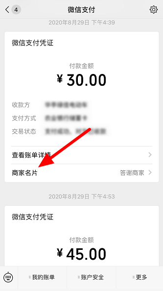 现如今,很多人习惯使用手机付款消费,如果你是使用微信付款,付款之后还可以给商家留言,方便与商家沟通问题。微信支付之后如何给商家留言?一起来看具体操作方法。 微信怎么给商家留言? 打开手机微信,进入界面,点击上方搜索栏,输入【微信支付】,进行搜索,   进入微信支付列表,如图,找到需要留言的微信支付凭证,点击【商家名片】,然后点击【给商家留言】,   在对话框中输入想跟商家说的话,点击【发送留言】即可。  了解更多精彩教程资讯,关注wmz33. 驾驭命运的舵是奋斗。不抱有一丝幻想,不放弃一点机会,不停止一日努力。he.com。 -