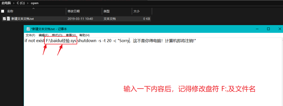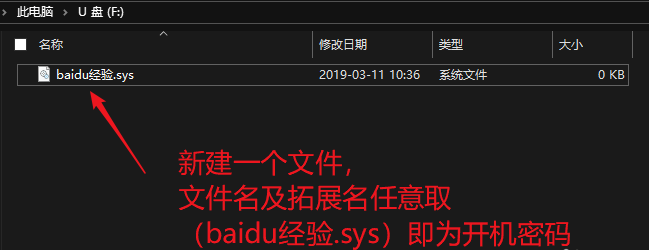 为了防止别人随意乱动自己的电脑,我们可以设置开机密码,但是这种方式很容易被破解,想要更好保护个人隐私,大家不妨给电脑“上锁”,以后只能用钥匙打开。本文介绍了将U盘变成电脑开机钥匙的方法,有兴趣的小伙伴可以了解。 如何将U盘变成电脑的开机钥匙? 打开电脑,把U盘插入电脑,查看U盘盘符,  打开U盘,创建一个空白的文本文件,文件名和扩展名都可以随意取名,注意,文件名和拓展名即为开机钥匙,  在C盘根目录创建一个文件夹,打开之后,新建一个TXT记事本,  打开记事本文件,输入相关内容【if not exist F:\baidu经验.sys shutdown -s -t 20 -c "Sorry,这不是你的电脑,计算机即将注销!"】,注意,记得修改盘符及文件名,  将其另存为"开机锁脚本.bat"文件,删除原来的文本文件,  点按快捷键【Win+R】,弹出运行窗口,输入gpedit.msc,回车,  打开本地组策略编辑器,在左侧导航栏中依次点击【计算机配置】——【Windows设置】——【脚本(启动/关机)】,然后在右侧窗口点击【启动】选项,在属性面板中点击【添加】,  弹出添加脚本对话框,点击【浏览】,找到C盘目录下创建的"开机锁脚本.bat"文件,点击打开,   点击确5. 人生如梦,梦如人生,唯有懂得珍惜,宽容,理解,谦让就能真正的拥有一份宁静,一份平淡,一份真情,就能容纳布满尘土与风霜的笑容。也就能让你美好的爱拥有永恒。定,关闭对话框,然后回到属性面板,点击确定,关闭窗口,   重新启动电脑,即可保存设置,下次开机的时候必须插入U盘才能进入系统,否则电脑就出现提示并在20秒后自动关机!了解更多精彩教程资讯,关注wmzhe.com。 -
