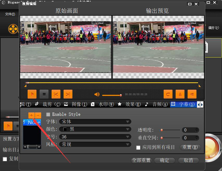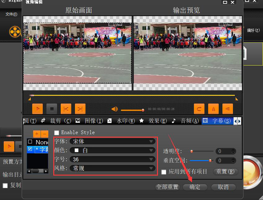 很多人在处理视频的时候,发现视频如果只有画面、声音,那看起来就会比较费劲,因为要集中精神去听才知道视频人物说了什么。为了解决这问题,我们可以用Bigasoft Total Video Converter给视频添加字幕。只是很多人不懂怎么操作,下面来为大家讲解Bigasoft Total Video Converter如何给视频添加字幕,让你的视频看起来更清晰易懂。  Bigasoft Total Video Converter如何给视频添加字幕? 1、首先,我们进入Bigasoft Total Video Converter操作界面,点击左上方的“添加文件”按钮。  2、然后,在弹出的窗口中,将需要添加字幕的视频选中,并点击“打开”按钮,将其导入Bigasoft Total Video Converter。  3、视频导入后,我们可以看到它的字幕显示是“无”,我们就点击它的倒三角形图标按钮,并从其下拉选项中点击“编辑字幕”。  4、此时,Bigasoft Total Video Converter便会弹出视频编辑窗口,我们点击窗口左侧的“+”按钮。  5、在弹出的窗口中,我们将事先制作好的“*.srt”格式的字幕文档选中,并点击“打开”按钮,将它导入Bigasoft Total Video Converter。  6、接下来,我们根据自己的需要设置给视频添加字幕的字幕字体、颜色、字号、风格,设置完成后,点击窗口右下方的“确定”按钮。  7、如果输出目录需要更改的话,就点击Bigasoft Total Video Converter界面的“浏览”按钮。  8、在弹出的窗口中,选择视频添加了字幕后的保存路径,并点击“确定”按钮。  9、随后,回到Bigasoft Total Video Converter操作界面,点击右下方的“开始”按钮,Bigasoft Total Video Converter便开始为该视频添加字幕。  10、最后,当进度条显示总进度为100%时,说明Bigasoft Total Video C39. 被人讨厌时就是被人讨厌,被人腻烦时就是被人腻烦,但你的自身价值并不因此而下降。就算被人甩了,也别像被贬值了似的唠唠叨叨。onverter已成功为该视频添加字幕。  视频没有字幕的话,别人看起来听起来会感觉很费劲,可以用Bigasoft Total Video Converter快速给视频添加字幕。这样一来,不仅能让视频变得更完整,而且更是容易被看懂。 -