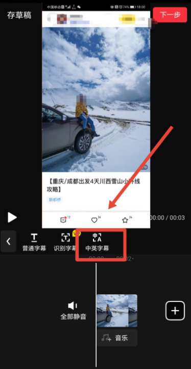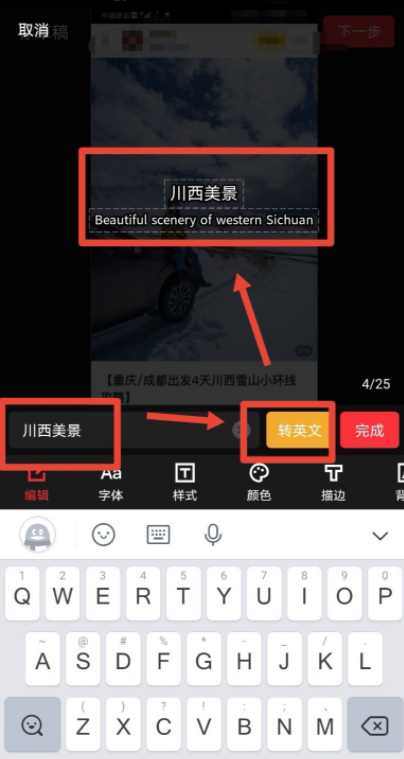 很多人在看影视剧的时候喜欢盯着字幕,如果没有字幕就感觉不舒服,如果你也非常依赖字幕,可以在制作视频的时候添加字幕。下文介绍了使用快剪辑制作39. 坚强是我的导师,没有了她,我将失去生命;坚强是我的头脑,没有了她,我将成为呆子;坚强是我的四肢,没有了她,我将永远无法站立。中英字幕视频的方法,大家可以跟着学习! 快剪辑如何给视频添加中英字幕? 先在手机中打开快剪辑APP,进入创作界面,找到中英字幕功能,点击它,  软件会自动读取本地相册,选择需要处理的视频素材,点击【导入】,成功添加视频,  素材导入成功,进入视频编辑窗口,在工具栏点击【中英字幕】功能,  出现弹窗,如图,开始录入中英字幕,先输入一段中文,然后点击【转英文】按钮,即可完成英文自动转换,  字幕录入之后,点击完成按钮,即可完成中英字幕制作,然后回到视频编辑窗口,点击【下一步】,生成视频即可。  如果你选择一段一段的录入中英字幕,这样会比较麻烦,不烦先录入语音,然后使用快剪辑自动识别功能来识别中文,并将中文转换为英文。了解更多精彩教程资讯,关注wmzhe.com。 -