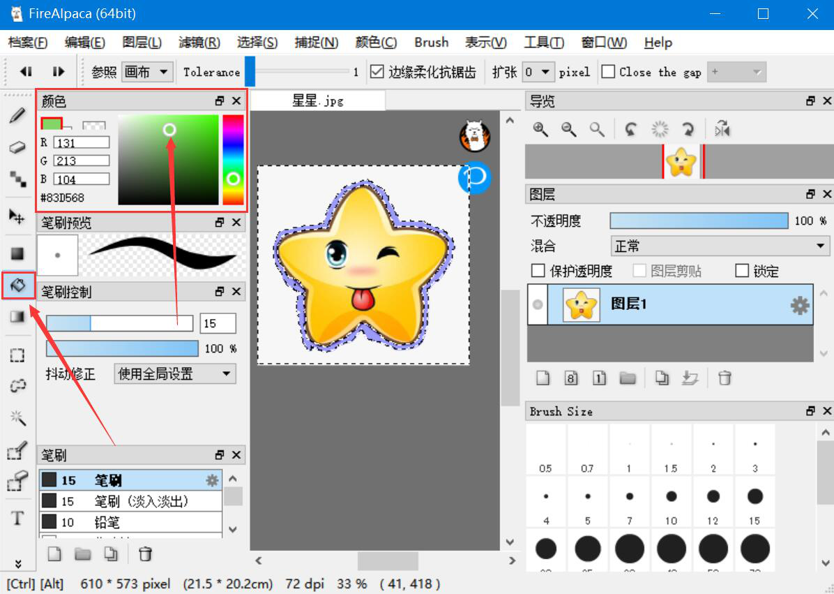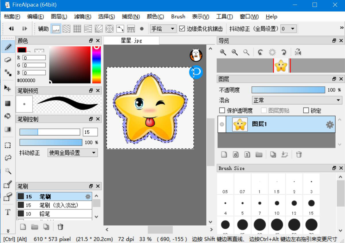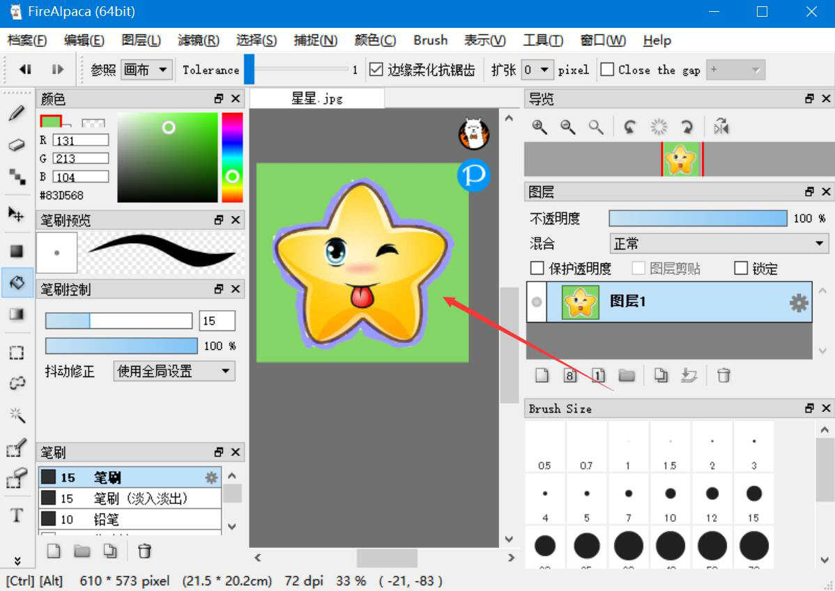 工作中,我们常常需要处理很多图片。比如说有些图片背景不好看,我们想要更换背景,可是自己又不懂复杂的设计软件,也没有设计基础,该怎么办?如果图片元素不复杂,我们就可以用FireAlpaca来更换图片背景。不过还是有些人不懂操作,所以,本文举例为大家分享FireAlpaca更换背景教程。  FireAlpaca如何更换图片背景? 1、首先,我们进入FireAlpaca操作界面,点击“档案”菜单中的“打开”。  2、在弹出的窗口中,将需要更换背景的图片选中,例如我们要更换的是星星的背景,就点击“打开”按钮,将它导入FireAlpaca。  3、然后,我们单击毁瓦画墁拼音:huǐ wǎ huà màn释义:打碎屋瓦,涂灭已画好的田地界线。比喻一种无益不害的行为。出处:《孟子·滕文公下》[孟子]曰‘有人于此,毁瓦画墁,其志将以求食也,则子食之乎?’”赵岐注孟子言人但破碎瓦,画地则复墁灭之,此无用之为也,然而其意反欲求食,则子食乎?”示例:将其藉兹遣日,如~者所为耶?★章炳麟《五无论》FireAlpaca界面左侧下方的选笔工具,并点击如下图的放大镜按钮,将需要更换背景的星星图片放大。  4、接下来,我们按住鼠标左键对星星的轮廓慢慢进行描画,尽量抠得仔细些。  5、抠完星星,我们点击FireAlpaca“选择”菜单中的“反转”。  6、此时,我们便可以看到FireAlpaca将星星的背景给选中了。  7、比如说,我们要给星星更换成绿色背景,就点击FireAlpaca左侧工具栏中的油漆桶,并在颜色中点选自己想要的绿色,鼠标左键单击上一步选中的星星背景。  8、接着,我们便可以看到FireAlpaca将星星的背景更换好了。  9、最后,我们点击FireAlpaca“档案”菜单中的“另存为”将更换了背景后的星星图片给保存起来。  如果图片的主体元素比较单一,自己想要更换图片背景的话,就可以使用FireAlpaca来更换背景。不过要注意的是,尽量在抠图的时候扣得仔细一些,这样更换背景后的图片视觉效果才会更佳。 -