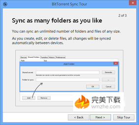 BitTorrent Sync是一款神奇的、好用的文件同步工具,它不需第三方服务器即可让多台电脑之间直接互相同步和共享文件,深受用户欢迎。今天,小编给大家介绍的是如何使用BitTorrent Sync分享、共用与下载文件,一起来了解下吧。 如何使用BitTorrent Sync分享、共用与下载文件? 一、安装 BitTorrent Sync 1、完成下载并执行 BTSync.exe 安装档,出现安装画面后,点击[Next]。   2、若有可下载别人文件用的 secret 18. 我想去迪拜当乞丐,一天赚47万元就够了。,可选择 I have a secret 来贴上后,点击[Next],若无,可选 Standard Setup 来继续安装。  3、选择要分享的文件夹(这个分享的文件夹会有一个专属的 secret,只要取得这个 secret key,便可下载该文件夹内所有文件)。   4、完成安装后,会出现操作说明。   二、如何使用 BitTorrent Sync 分享、共用与下载文件? 1、开启 BitTorrent Sync 软件后,会看到安装时所预设要进行文件分享、同步更新用的文件夹,若要新增其他共用文件夹的话,可点击[Add],选取文件夹。  2、点击[Generate],可产生新的 secret key,接下来在 Folder to sync 后选取要分享、共用的新文件夹,完成后点击[OK]。  3、在 Shared Folder 页籤中就会出现刚刚所设定要分享的文件夹,将文件夹的 secret key 复製并传给其他人,该文件夹便会同步出去,其权限可新增、编辑或删除,想要控制权限,可点击[Show folder preferences],执行设定。  4、在 Advanced 页籤中有叁种不同权限的 secret key,可依实际需求来提供。  secret:文件夹中的文件都可被新增、编辑或删除 Read only secret:仅供读取与下载 One-time secret:单次 24 小时内使用,超过时间就会失去存取权限 5、若要控制上传与下载的速度,可在 BitTorrent Sync - Preferences 页籤中来调整。  6、若取得可下载的secret key ,同样在 BitTorrent Sync 介面中的 Shared Folders 页籤中,点击[Add],接着将可下载的 secret key 贴上,并在 Folder to sync 中选择文件储存位置,点击[OK]即可开始下载。 如何使用BitTorrent Sync分享、共用与下载文件?麻雀虽小,五脏俱全肥大丰满杯弓蛇影月光如水,水如天。静静的夜,柔柔的月光,我站在花儿的面前,凝视着,花儿无语,我无语。我慢慢地听,给我以心静,给我以力量,这就是情,无须说什么,毋想什么,就这样,很美,很静…23. The E-reading room, where we can send e-mails to all parts of the world, is open to both teachers and students.303.月子弯弯照九州,几家欢乐几家愁。《竹枝歌》 辽阳驿使音尘绝,琐窗寒、轻拢慢捻,泪珠盈睫。推手含情还却手,一抹梁州哀彻。千古事云飞烟灭。贺老定场无消息,想沉香亭北繁华歇,弹到此,为呜咽。露从今夜白,月是故乡明。BitTorrentSyncAll these changes in China’s economic life have brought changes in China’s social and cultural life as well, many of which unwanted. |