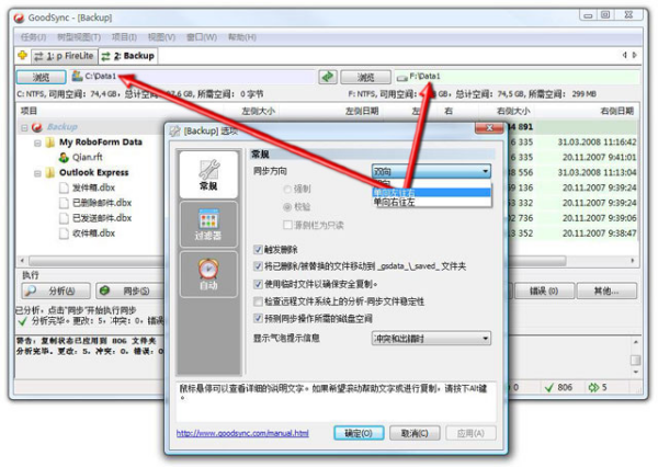 GoodSync可以说是目前唯一实现真正双向数据同步的解决方案,它拥有双向同步、单向备份、多任务同步的功能。GoodSync如何方便地设置和使用,这些都需要你来亲身体验。那么goodsync该怎么使用呢?下面小编为大家讲一下: goodsync软件使用方法: 基础设置 步骤 1: 点击两侧“浏览” 按钮以选定需要同步的双方文件夹。  步骤 2: 点击“分析”按钮GoodSync将计算出需要同步的文件并列示出来。 步骤 3: 当同步文件准备就绪之后,点击“同步”按钮。 你的文件已经同步完毕!是的,就是这么容易! 自动设置 -- 一次设置,永久省事! 这里有多种自动设置的方案可供你选择。你只需根据你的想法和时间安排设置好同步任务,仅此一次,以后GoodSync将按照你的要求自动进行文件同步。 步骤 1: 选择 任务 >> 选项,即可打开选项设置界面。  步骤 2: 点击 “自动”标签即可选择你所需要的自动操作功能。  GoodSync 现在将根据你指定的设置进行文件自动同步。 首先新建一个任务 步骤 1: 启动 GoodSync 之后,选择 任务 >> 新建  步骤 2: 为你的新任务指定一个名字,然后点“确定”按钮。  步骤 3: 现在即可回到上述 基本设置 中进行文件同步了。 通过 GoodSync 进行备份 GoodSync 不但是一个优秀的同步程序,同时也是一个广受欢迎的备份工具。通过 GoodSync 进行备份,可以保障你所有的重要文件,尤其是在面对诸如突然断电、计算 机崩溃、黑客工具等意外事件的时候更显重28. 朋友,不要暗泪垂,失去对象哭不回,不如努力去工作,建功立业有作为,待到寻到好郎儿嫁娶吉祥日,郎才女貌把心遂。要。 步骤 1: 选择 任务 >> 选项,即可打开选项设置界面。  步骤 2: 在任务选项的常规设置中下拉选择单向...及相应的备份方向。例如:如果打算将文件夹C:\\p 中的内容备份到C:\\Program Files中,你可以选择“单向左往右”  步骤 3: 现在即可回到上述 基本设置 中进行文件备份了。 总结:以上就是小编为大家带来的全部goodsync软件怎么用相关内容了,大家可以去试试哦。 GoodSync怎么样?GoodSync怎么用?浩浩烘云自强不息托月长空5. 生命不也如一场雨吗?你曾无知地在其间雀跃,你曾痴迷地在其间沉吟——但更多的时候,你得忍受那些寒冷和潮湿,那些无奈与寂寥,并且以晴日的幻想来度日。到目前为止,我对我们取得的成绩很是满意。285.不畏浮云遮望眼,自缘身在最高层。《登飞来峰》 疏 影 姜夔286张祜:题金陵渡goodsync8.Experience is the mother of wisdom. 实践出真知。 |