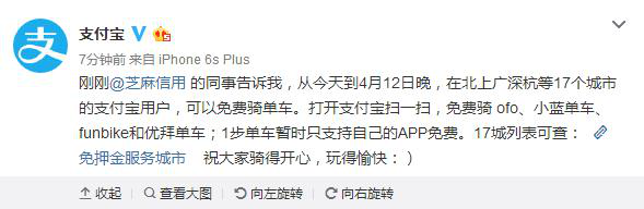 现在,随着共享单车的推出,越发方便了人们的日常生活,共享单车市场越来越火爆,这不,支付宝就推出了共享单车7天免费骑活动。那么支付宝用户可以免费骑行哪些共享单车呢?下文带来支付宝共享单车7天免费骑活动介绍,一起和小编来了解下吧!  支付宝共享单车7天免费骑活动介绍 支付宝可以免押金骑共享单车早就有了,4月6日到4月12日,只要你信誉好,就可以免押金共享单车免费骑。 支持本次免费骑活动的共享单车有:ofo共享单车、小蓝单车、优拜单车、funbike单车、1步单车。  在北上广深杭等17个城市的支付宝用户,可以免费骑单车。打开支付宝扫一扫,免费骑 ofo、小蓝单车、funbike和优拜单车;1步单车暂时只支持自己的APP免费。 芝麻信用分最低都要600分,你满足条件吗? 捶床拍枕拼音:chuí chuáng pāi zhěn释义:形容辗转难以入睡。同捶床捣枕”。出处:清·曾朴《孽海花》第三回他脾气越发坏了,不是捶床拍枕,就是咒天骂地。”示例:无 支付宝扫一扫:共享单车7天免费骑夕阳风雨同舟西俯首帖耳斜61. 要知道,如果你经常自嘲自黑,习惯自虐自弃,然后又能很拽地自欺自愈,自己的情绪完全能够自己一手打理,那就难怪没有什么人心疼你了。13. Let’s work together to make our world a better place.42.知之为知之,不知为不知,是知也。 醉别西楼醒不记,春梦秋云,聚散真容易。斜月半窗还少睡,画屏闲展吴山翠。时难年荒世业空,弟兄羁旅各西东。支付宝66、Fact is stranger than fiction. |