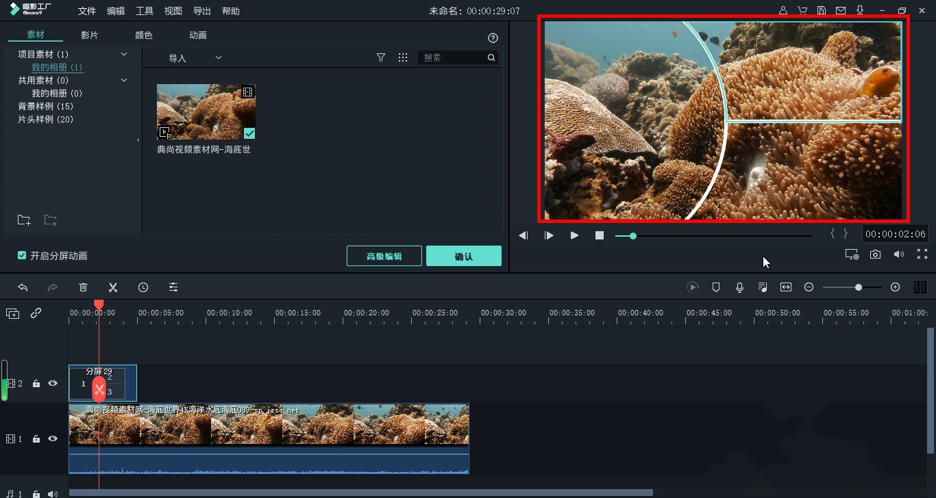 后期剪辑视频,我们有时候需要制作分屏特效,使得画面呈现高级的视觉艺术效果,对于新手来说,小编建议使用喵影工厂进行操作。喵影工厂如何制作分屏视频?请看文章说明。 如何使用喵影工厂制作视频分屏效果? 打开喵影工厂,进入软件界面,在菜单栏点击【导入】——【导入媒体文件】,从本地计算机选择并加载一个视频文件,  如图,点击视频文件中间的【+】,将该视频添加到视频轨道区域,   在上方工具栏点击【选择】,从中选择一个分屏模板,  使用鼠标拖动分屏模板组件,将其移动到视频上方的轨道区位置,  按住鼠标左键拖动,将遮罩蒙版移走,顺利移走分屏模板组件上的遮罩蒙版,   分屏视频制作完成,点击播放视频,查看具体视觉效果。   了解更多精彩教程资讯,关注wmzhe.com。 -