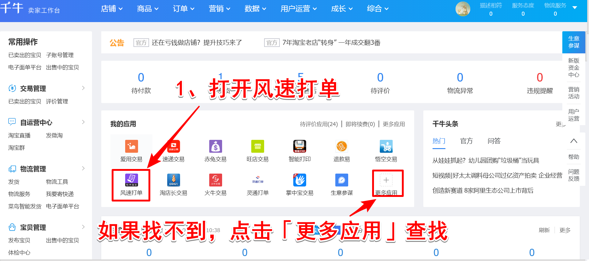 随着电子面单的普及,商家告别了手写快递单据的繁琐流程,不仅可以节约时间,而且减轻了工作量。由于商品体积或者重量的原因,商家需要将一个订单分成多个包裹进行邮寄,这就涉及到“一单多包”的问题,很简单,只需要通过千牛工作台进行简单设置就行了。 千牛如何设置打印一单多包快递单? 在电脑53. 人生不止,寂寞不已。寂寞人生爱无休,寂寞是爱永远的主题。我和我的影子独处。它说它有悄悄话想跟我说,它说它很想念你,原来我和我的影子都在想你。中打开千牛,输入账号,登录千牛工作台,进入界面,点击【物流管理】——【电子面单平台】,  如图,选择需要开通的快递公司,点击【申请】,弹出窗口,新建发货地址,填写相关信息,提交申请并联系快递公司审核,    点击【我的服务商】,查看审核结果,如下图,  现在设置模板,点击打开【风速打单】,如果找不到,点击【更多应用】进行查找,  如图,点击【更多功能】——【快递单模板】,添加快递单模板,选择已开通电子面单的快递公司,创建快递单模板,   设置模板细节,保存模板,  现在设置打印一单多包,如图,选择订单,点击下方【打印快递单】,  弹出窗口,选择【一单多包】,设置打印份数,点击【打印新单号】,  如若,打印完成,点击发货即可,  了解更多精彩教程资讯,关注wmzhe.com。 -