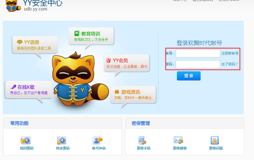 密保问题作为账号的安全保证之一,一直存在于很多软件的安全设置,YY也不例外。由于它不像账号密码一样频繁使用,因此很容易忘记或者和其他账号密保记混,那么碰到YY语音密保问题忘记的情况应该如何处理呢? YY语音密保问题忘记了怎么办? 1、进入YY安全中心网站,输入账号密码进行登录。  2、选择【密保问题】标签页,然后选择【自助服务】,这时会弹出自助服务窗口,在其中找到【修改密保问题】并点击进入。  3、进入新界面,这里有两个选项:“知道密保问题答案”和 “忘记密保问题答案”。如果能回忆起旧密保答案,那么直接选择第一个然后重置密保问题即可;否则选择第二项“忘记密保问题答案”。  4、进入新密保设置界面,设置新密保,可以选择系统给出的问题然后设置答案,也可以自行设置问题和答案,设置之后点击【我要申请自助修改密保问题】。  5、由于旧密保忘记,为了账户安全,重新申请需要15天时间。在15天倒计时结束后,用户的密保问题和答案才能修改成功。  以上就是关于YY语音密保问题重置教程的介绍,当然这个15天的设置有些坑爹,不过为了账号安全也无可厚非,建议小伙伴把一些重要的账号问题简单记录一下以免混淆和忘记! -