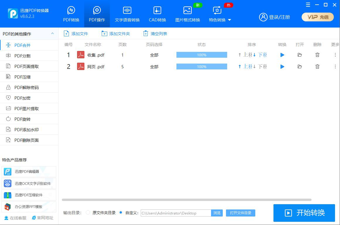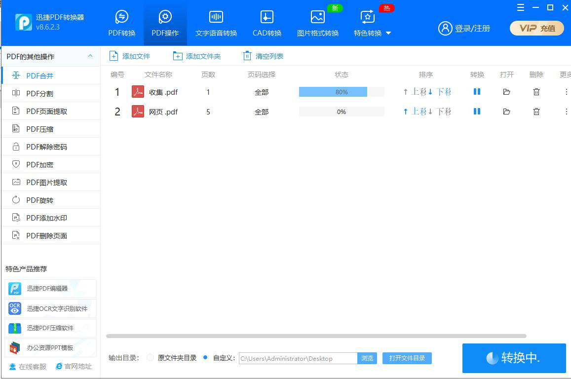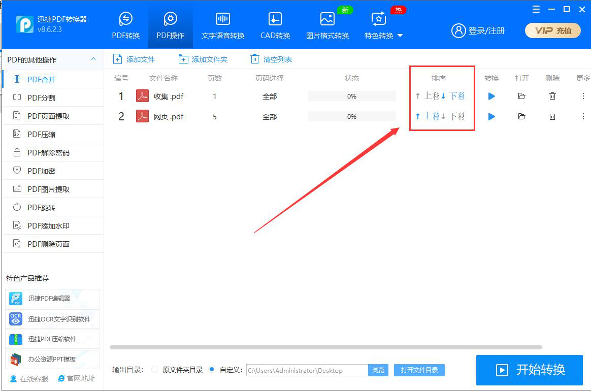 在日常工作中,我们经常会收到很多因为文件太大而被分割的PDF文件。可是当我们阅读文件的时候,却觉得不够连贯。为了解决这一问题,我们可以用迅捷PDF转换器将PDF文件进行合并。可是很多人不懂怎么操作,所以,本文为大家分享迅捷PDF转换器合并PDF文件教程。  迅捷PDF转换器如何合并PDF文件? 1、首先,我们打开迅捷PDF转换器。切换至“PDF操作”界面,点击左侧功能栏中的“PDF合并”和界面右侧的“+”按钮。  3、在弹出的窗口中,我们将需要合并的PDF文件分别选中,并点击“打开”按钮,将它导入迅捷PDF转换器。  3、然后,在迅捷PDF转换器中,我们先对需要合并的PDF文件进行排序。  4、接下来,如果默认的输出目录需要修改的话,就点击“浏览”按钮自定义PDF合并后的保存路径,再点击“开始转换”按钮,迅捷PDF转化器便执行合并PDF文件的指令。  5、接着,在迅捷PDF转换器中,我们可以实时了解到PDF文件合并的进度。  6、最后,PDF文件合并完成了,我们可以点击打开处的文件夹按钮快速打开合并后的PDF文件。  想要合并PDF文件,都可以使用迅捷PDF转换器。不过在合并之前,我们要根据自己的实际情况对需要合并的多个PDF文件进行排序,否则合并后就会出现上文不接下文的情况,反而会影响阅读体验。 18. 我想去迪拜当乞丐,一天赚47万元就够了。 -