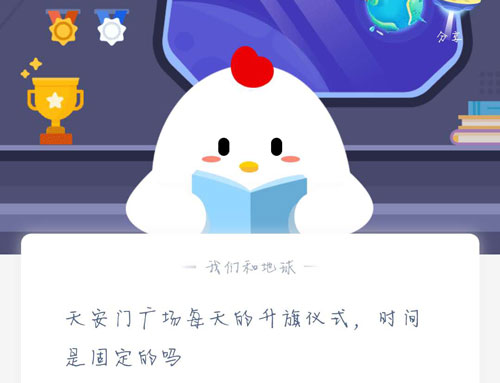 天安门广场每天的升旗仪式,时间是固定的吗?在支付宝蚂蚁庄园每日一题中,10月20日的问题是问天安门广场每天的升旗仪式,时间是固定的吗?天安门升旗时间是固定的吗?下面就和小编一起来看看吧! 【小编推荐:支付宝蚂蚁庄园每日一题大全>>】  问题:天安门广场每天的升旗仪式,时间是固定的吗? 选项:不是、是 答案:不是  北京天安门广场每天都要升国旗,无论天气是刮风还是下雨,国旗都是按时升45. 感情的事总是很难说清楚,我知道分手总是令人难过的,但无论如何,我永远都会站在你这一边,支持你。努力让自己快乐起来吧,好吗?降,但是升国旗的时间是根据北京地区太阳出没的时间表决定。 升国旗的时间是根据北京天文台提供的北京地区太阳出没的时间表决定,国旗的升降是随着太阳上缘露出地平线,下缘离开地平线为准,国旗和太阳升降寓意着祖国与日月同辉。 天安门广场的升旗仪式每天都吸引着很多的民众前来观看,升旗仪式是通过演示象征意义来强化人们对国家的认同和归属的政治心理,本质上是强化人们对中华人民共和国的认同与支持。 国旗是一个国家的标志性旗帜,是国家的象征,所以升旗仪式在举行的时候是非常庄严肃穆的,天安门国旗护卫队隶属于中国人民解放军三军仪仗队,每天都从事国旗的升降工作。 参观升国旗仪式需要提前排队,一般凌晨一点的时候就已经有人开始排队了,需要排队的队伍非常长,所以要提前去。 在参观仪式的时候需要带好足够的食物和水,天气比较冷的时候最好是带厚外套,尤其是秋冬季节,还要注意保管好自身的财物。 以上就是天安门广场每天的升旗仪式,时间是固定的吗的全部内容了,希望以上内容对您有所帮助! 天安门广场每天的升旗仪式,时间是固定的吗百花仰不愧天盛形影不离开2. 天空包含着白天和黑夜,即使黑夜的阳光远不及白天,但天空却不能失去黑夜,就像黑夜不能失去星星。68. I personally feel that teacher is the most important profession in the world.205.世有伯乐,然后有千里马,千里马常有,而伯乐不常有。《杂说四?马说》 声声慢 李清照141韦应物:赋得暮雨送李胄75、The heart is seen in wine. |
