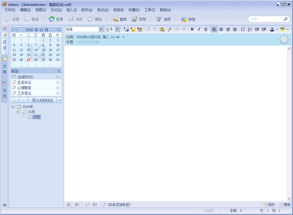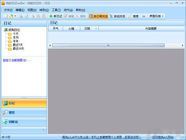 现如今,还有很多人都保持着写日记的习惯吧,写日记的目的无非是为了倾诉分享或用来记录怀念,传统的写日记的形式就是在纸张上书写,随着时代的发展和科技的进步,有越来越多的日记本软件出现。今天,小编就给大家介绍几款优秀的日记本软件,快看看哪款适合你吧。 一、效能日记本  效能日记本是一款完全免费、美观易用、功能强大的电脑日记软件。效能日记本基于成熟完善的高效e人最新版本发展而来,内置GlobalSign官方许可数字签名证书,完美支持64位和32位的windows操作系统的各个版本。效能日记本支持文件加密,充分保护个人隐私,支持插入图片、表情、表格和附件等。强大的闪电全文搜索技术。 软件功能 强大的闪电全文搜索技术。时间久了,是否难以找到以往写过的日记?只要您还记得日记中的某个词语,在搜索界面输入该词语后简单按一下回车,就能快速找到相关的日记!软件对登录密码使用SHA不可逆算法加密,并且对文件内容本身也进行了加密,充分保护您的私有信息。除了按日期对日记进行管理外,您还可以按多级分组对日记进行管理!强大的日记编辑功能。您可以在日记中插入表格、图片、超链接甚至附件等诸多信息。您还可以单独设置某篇日记的背景色、背景图片等信息。特有“回收站”功能,误删除的日记也有机会恢复。 二、Dear Diary  Dear Diary(中文名:桫椤札记)是一款多媒体轻型的仿真日记本程序,它与其它电子日记本的最大不同之44. 感情的悲剧性就在于:并无银河隔断双星,而彼此早已相忘于江湖。处,就是它是一款真正纸质效果的带有翻页动画效果的日记本(并不是简单页面切换或分页技术),目前也是国内唯一一款真正的带有翻页效果的日记本程序。 Dear Diary 允许用户自定义设置字体、字号、颜色等功能,允许用户自定义日记本物理尺寸、页数、模板、样式、风格等功能。 三、eDiary  eDiary电子日记本是一款用于在电脑上写日记或收集文档的软件。支持常用的文字编辑排版功能,具有高强度的保密性。eDiary的作用不仅仅在于写日记,您也可以用它来记流水帐、写工作日志,记录学习心得,或者用它来管理你的日常文档。eDiary以时间为主线,以文字为载体,记录你的心路历程。 四、RedNotebook  RedNotebook是一款界面简洁的、可以运行在Linux环境下的桌面日记本。RedNotebook不论是拿来写日记,还是写些简单的每日计划,都非常适用。RedNotebook右边的边栏是个单独的区域,可以在里面建立分类的文本,非常适合来记录计划、灵感,或者今日大事。 多款常用日记本软件推荐,记录你的心情风雨清香震耳欲聋鲜嫩无阻38. 倘若期望在金色的秋天收获果实,那么在寒意侵人的早春,就该卷起裤腿,去不懈地拓荒播种耕耘,直到收获的那一天。promote 促进;improve 改善110.绳锯木断,水滴石穿。 不忍登高临远,望故乡渺邈,归思难收。叹年来踪迹,何事苦淹留?想佳人妆楼凝望,误几回天际识归舟?争知我、倚阑干处,正恁凝愁?未必逢[矢曾]缴,孤飞自可疑。日记本44、Strike while the iron is hot. |
