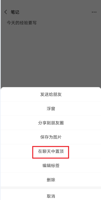 虽然现在大多数的智能手机提供了备忘录功能,但是很多人还是容易忽略,鉴于此,小编推荐使用微信创建备忘录,在聊天过程中可以随时进行查看。如何创建微信备忘录?请看文章说明。 如何使用微信备忘录功能? 打开手机微信,进入界面,点击右下角的存心积虑拼音:cún xīn jī lǜ释义:指长期、一贯的思想、想法。出处:宋·苏辙《进策五道·臣事下》第三道社稷之臣可使死宗庙,郡县之臣可使死封疆,文吏可使死其职,武吏可使死其兵,天下之人,其存心积虑,皆以为当然,是以寇至而不惧,难生而无变。”示例:无【我】,选择【收藏】,  打开收藏功能,进入我的收藏界面,点击【+】,  新建一个笔记,输入相关内容,例如写下你要做的事情,然后点击右上方的菜单图标,  底部会弹出菜单选项,点击【在聊天中置顶】,  返回微信消息界面,如图,最上方置顶显示了笔记内容,效果堪比备忘录!  了解更多精彩教程资讯,关注wmzhe.com。 -
