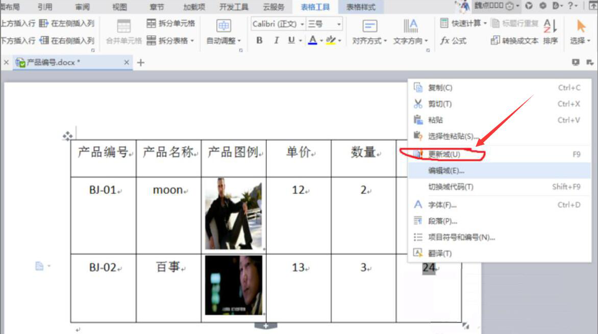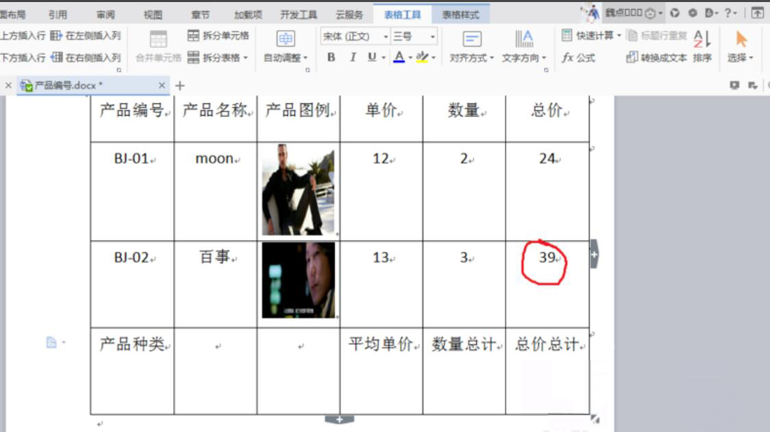 我们平时用word做工作汇报,常常会插入表格。而为了计算word表格里的数据,很多人是使用计算器统计,这样容易出错,花的时间也多。其实,可以用word的公式来计算表格数据。考虑到很多人不懂,本文举例讲解word怎么计算表格里的数据。  word如何计算表格里的数据? 1、首先,我们将需要计算表格里的数据的word文档打开。例如,如下图,我们要单价乘以数量才能等于总价,就将光标定位到总价的单元格。  2、然后,点击word“表格工具”菜单中的“fx公式”按钮。  3、弹出公式窗口,我们先清空原本公式函数,只保留“=”号,并且从“粘贴函数”中选择“PRODUNT”这个乘法函数。  4、接下来,在word中,我们点34. 失恋了,好似上帝再给你一次重新选择的机会,让你看清对方,看清自己。让你知道自己真正想要的是什么。击表格里需要计算的单元格数据。再从表格范围中点击“LEFT”,word便开始计算表格里被选中的单元格数据。  5、此时,我们便可以看到word表格里的第一个产品的数据被计算出来了,总价是24。  6、可是,word表格里的其他产品的总价数据还没计算,我们先将刚才统计的总价24复制并粘贴到其他产品的总价单元格。再将该总价选中,右键单击它,并从右键菜单中点击“更新域”。  7、最后,我们可以看到word表格里的其他产品的总价数据也被计算出来了,如下图。  想要在word中计算表格里的数据,就需要通过word的公式功能来实现。如果表格里有多项数据要计算的话,那么要复制粘贴已计算好的单元格,再通过更新域将word表格里的数据都计算出来。 -