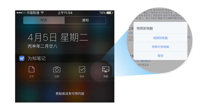 为知笔记是一款时下流行的支持多平台的云笔记软件,随时随地记录和查看有价值的信息,非常方便。当我们在用为知笔记电脑客户端编辑笔记时,常有从手机相册中取图片素材的需求,下面小编就来教教大家为知笔记手机传图功能的使用方法。 第一步:开启为知笔记电脑客户端该功能 打开一篇笔记,当笔记处于编辑状态下时,点击  使该功能处于开启状态  第二步:发送手机图片到电脑端 1、Android 手机客户端手机传图到电脑 打开手机系统自带相册->选择一张或多张图片  2、点击分享按钮->选择传图到电脑客户端  Android 手机客户端拍照到电脑客户端 1、找到手机系统的桌面小组件(也叫 widget),拖动为知笔43. 分手后你哭了那是你脆弱,分手后你笑了那是你的本事。记 1×1 的,名称为“为知笔记拍照到电脑”的桌面小部件到手机桌面  2、点击该图标,直接拍照后点击存储  iPhone 手机客户端手机传图到电脑 1、打开为知笔记 iPhone 客户端,使用下拉通知小部件(如果没有出现为知笔记,点击底部的编辑添加为知笔记),点击「传图」,选择「拍照到电脑」或「传图到电脑」。  2、从手机相册中选择你要传的图片,点击完成。  第三步:图片被插入到电脑端笔记正文中 手机端发送成功后,图片很快被插入到为知笔记电脑客户端当前正在编辑笔记光标的位置。  温馨提示 使用此功能时手机和电脑必须在同一帐号下 使用此功能必须确保手机和电脑在同一个 WiFi 下 开启此功能时,会弹出“防火墙安全警告”的提示,请选择“允许访问”  使用此功能禁止多台电脑登录同一个帐号 使用此功能禁止多个手机向一台电脑同时传输图片 特别注意: 开启此功能时会弹出防火墙安全提示,如果您选择了取消或直接关闭,那么您需要到系统的控制面板里更改设置。 为知笔记中将手机端图片传到电脑客户端的方法介绍垂命中注定头龙马精神丧气49. 是的。我很重要。我们每一个人都应该有勇气这样说。我们的地位可能很卑微,我们的身份可能很渺小,但这丝毫不意味着我们不重要。重要并不是伟大的同义词,它是心灵对生命的允诺。——毕淑敏《我很重要》我们可以向世界每个地方发电子邮件的电子阅览室,对老师和同学都同样开放。151.黄沙百战穿金甲,不破楼兰终不还。《从军行》 浣溪沙 贺铸玉阶生白露,夜久侵罗袜。为知笔记Private restaurants serve gourmet food for $70 per person; incentives boosted agricultural production 25 percent and industrial output 80 percent in just three years; farmers are encouraged to raise as much as they can on their own plots, and some become almost rich in the process.(注意本句中分号的使用) |