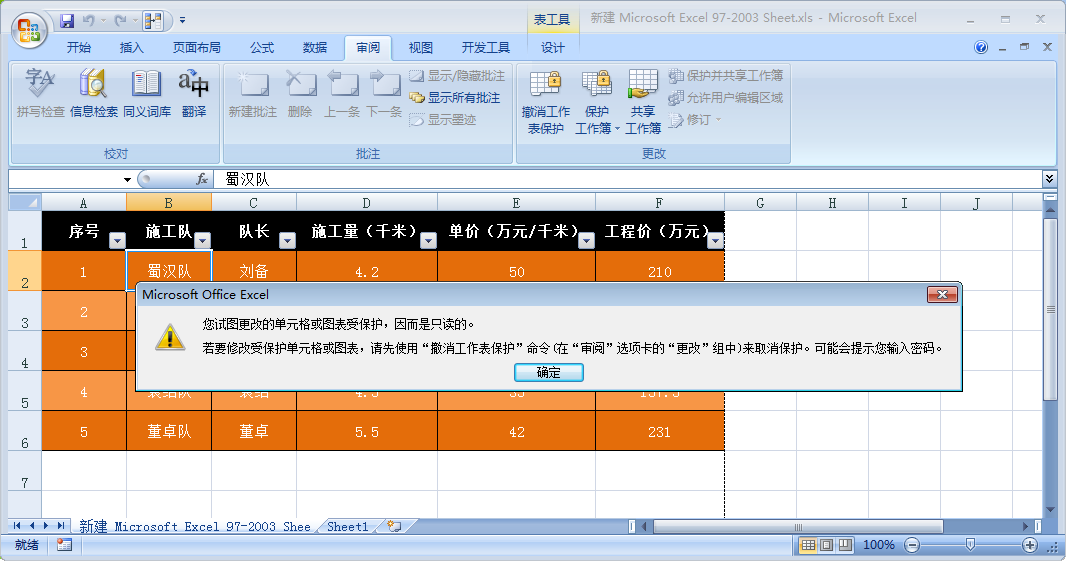 很多公司为了节约成本,常常会让多个员工共用一台电脑,这就带来一个问题:做好文件很容易被别人修改,比如费了好大功夫核对好的Excel表格。这就需要善用文件保护。好多文档文件都可以设置文件保护,Excel也不例外,今天我们就以Excel2003为例,演示如何设置Excel保护工作表避免被修改。  如何保护Excel工作表避免被修改? 1、打开任意Excel表格,点击上方菜单中的【审阅】,在其下选项中点击【保护工作表】或【保护工作薄】。这两个功能使用方法类似,这里我们点击【保护工作表】。  2、弹出保护工作表窗口,设置保护工作表密码,其他默认,然后点击【确定】。  3、弹出确认密码窗口,在文本框内再次输入密码,然后点击【确定】。  4、这时工作表就被保护了。  5、尝试修改工作表中内容就会弹出图标被保护的提示窗口,工作表无法被修改。 9. 当爱情不在的时候,请对他说声祝福,毕竟,曾经爱过。 6、如果想要修改工作表,就需要点击【审阅】-【撤销工作表保护】,在弹出的撤销工作表保护窗口中输入保护密码,然后点击【确定】,这样才能取消保护进行修改。  以上就是关于Excel如何保护工作表避免被修改的介绍,是不是很好用呢?需要的小伙伴快去试试吧! 如何设置保护Excel工作表?避免被随意修改龙马精神真才披荆斩棘实学39. 给自己找茬是诊断,给自己找事是磨练,给自己剖析是知己,给自己嘲笑是激励!我容易相处并且喜欢交朋友。34.三军可夺帅也,匹夫不可夺志也。 夜合花 史达祖隔座送钩春酒暖,分曹射覆蜡灯红。Excel,表格Traditionally, saving is viewed as a virtue, while borrowing is considered as a vice. |