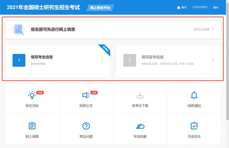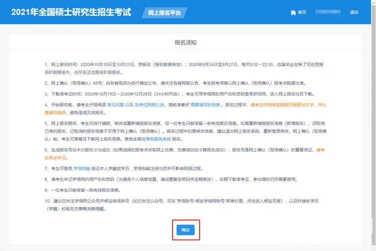 2021考研报名时间入口官网,在2020年10月10日,所有准备考研的用户可以正式报名,报名参与考研,那考研报名入口在哪里,怎么报名2021考研,2021考研报名时间入口官网是什么,下面就和小编一起来看看吧!  预报名时间:2020 年 9 月 24 日—— 9 月 27 日,每天 9:00——22:00 网上报名时间:2020 年 10 月 10 日—— 10 月 31 日,每天 9:00——22:00 报名入口:https://yz.chsi.com.cn/yzwb/ 1、首先进入中国研究生招生信息网,在首页点击 【统考网报】,进入网上报名页面 ;  2、然后再点击中间的【点击登录】登录自己的账号;  3、登录自己的账号之后,在用户中心点击【网上报名】;  4、随后仔细阅读报名须知,阅读后点击下方的【确定】;  5、最后,点击【报名前可先进行网上调查】、【填写考生信息】、【填写报考信息】即可;  1、登录中国研究生招生信息网:htt16. 遇见你,是我一生的幸运,喜欢你,是我做过最好的事。ps://yz.chsi.com.cn/; 2、登录自己的账号,或者注册一个账号,通过实名注册,进入研究生网上报名系统; 3、填写自己的信息:学籍学历、基本信息 、户籍档案、家庭主要成员、学习与工作经历、奖惩情况、联系方式; 【未报名】 4、未进行过预报名的用户 ,需要阅读公告和考试承诺书并点击认可,报名完成后进入下一步; a、自诩阅读各省以及招生单位网报公告 ,并选择招生单位、考试方式,以及专项计划; b、选择自己需要报考的专业、研究方向、以及考试科目; c、选择报考点并阅读省、报名点网报公告; d、确认自己报名信息,并提交报名信息,将生成的报名号牢记; e、通过网上支付,支付相关的考研费用; 【已报名】 5、之前已经进行过预报名的用户,查看或者修改自己的报名信息,再进行下一步; 6、报名完成之后,需要进行网上确认,或者现场确认(在2020年11月10日之前,由各省级招办自行确定公布); 7、然后使用自己的学信网账号登录研招网,并下载准考证打印(2020年12月19日-28日); 8、最后就是考试,开始时间是2020年12月26日-27日(28日);  以上就是2021考研报名时间入口官网的全部内容了,希望以上内容对您有所帮助! 2021考研报名时间入口官网杯冷龙潭虎穴冷清清弓蛇影7. 倘若希望在金色的秋天收获果实,那么在寒意侵人的早春,就该卷起裤腿,去不懈地拓荒播种耕耘,直到收获的那一天。4. The best way to remember new words is to practice them everyday.69.战无不胜,攻无不克。 壁月初晴,黛云远淡,春事谁主?禁苑娇寒,湖堤倦暖,前度遽如许。香尘暗陌,华灯明昼,长是懒携去。谁知道、断烟禁夜,满城似愁风雨。耶娘妻子走相送,尘埃不见咸阳桥。From what has been discussed above (Taking into account all these factors / Judging from all evidence offered), we may safely draw (reach / come to / arrive at) the conclusion that… |