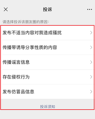 微信俨然成为我们日常生活中使用频率较高的一款社交软件,闲来无事,大家可以刷刷朋友圈,看看好友动态。如果你发现有人发布不良信息,可以进行举报,下面小编就来演示操作方法! 微信如何举报朋友圈内容? 打开手机微信,进入界面,点击下方的【发现】,选择【朋友圈】,  进入朋友圈,如图,找到需要举报的内容,长按对方头像,  底部会弹出菜单,点击【投诉】,然后选择举报原因,   最后点击【提交给微信团队审核】,等待官方处理,注意,请勿恶意举报他人,维护良好环境!  了解更多精彩教程资讯,关注wmzhe.com。 -