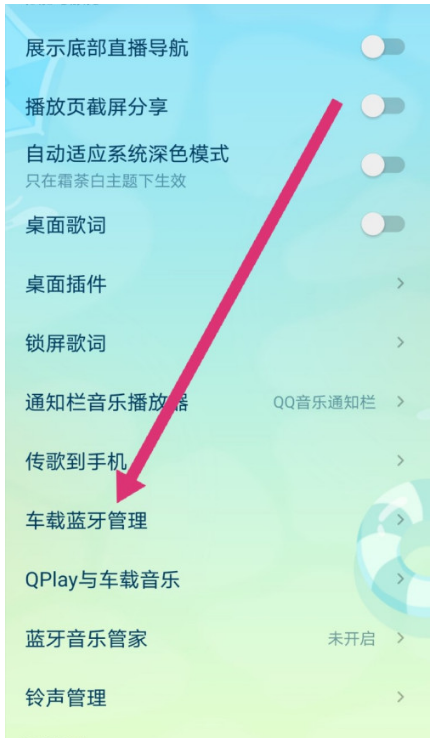 长时间开车容易产生疲劳,很多小伙伴喜欢通过听歌的方式来缓解心情,当然了,听歌的同时也要注意行驶安全。QQ音乐播放器设计了“车载蓝牙管理模式”,只要通过蓝牙连接车载设备,即可在设备中播放QQ音乐歌曲。 QQ音乐如何设置车载蓝牙管理? 在手机中打开QQ音乐播放器,进入界面,点击右下角【我的】11. 不知道,也许某天在喧闹的城市里,我们擦肩而过,我会停住脚步,凝视着那个正远去的背影,告诉自己,那个人我曾经爱过!,  进入个人中心,点击右上角的【更多】菜单,请看箭头指示,  跳转至以下界面,点击【设置】,在设置中心点击【车载蓝牙管理】功能,   进入窗口,如图,选择蓝牙,点击打开【标记为车载蓝牙】,如有需要,你也可以开启【连接后自动进入驾驶模式】,    设置完成,大家可以在行车过程中安心听歌,了解更多精彩教程资讯,关注wmzhe.com。 -