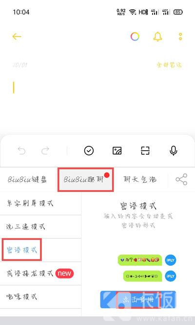 键盘密语怎么弄?你知道讯飞输入法有一个键盘密语模式吗,复制一些密语,打开键盘就能解析密语,那键盘密语模式怎么弄呢,密语键盘在哪里设置,怎么使用键盘密语,下面就和小编一起来看看吧! 1、首先将手机输入法的键盘修改为【讯飞输入法】,需要先下载讯飞输入法,再修改;  2、在聊天窗口或者便签中,打开讯飞输入法键盘,点击键盘左上角的【讯飞】图标; 25. 别说一辈子,别说永远,谁能对未来承诺呢?我们能把握的,无非是当时当地的感情。但一辈子,也是无数个现在组成的,努力好了每个瞬间,也就是永远了。  3、在讯飞输入法的菜单中,找到【BiuBiu神器】,点击该功能;  4、在上方选择【BiuBiu趣聊】,然后在左侧选择【密语模式】,点击【点击启用 】;  5、当键盘上方出现一个输入框之后,输入需要显示的密语,例如“我爱你”,点击【发送】;  6、然后,我们发出去的文字就会变成一串符号,这就是密语,复制密语;  7、打开键盘,这串密语就会自动解析;  以上就是键盘密语怎么弄的全部内容了,希望以上内容对您有所帮助! 键盘密语怎么弄舍己为水昨日黄花泄不通人月光如水,水如天。静静的夜,柔柔的月光,我站在花儿的面前,凝视着,花儿无语,我无语。我慢慢地听,给我以心静,给我以力量,这就是情,无须说什么,毋想什么,就这样,很美,很静…challenge vt. 挑战378.心病终须心药治,解铃还是系铃人。 苏幕遮 范仲淹066韩愈:山石One of the reasons given for … is that… |