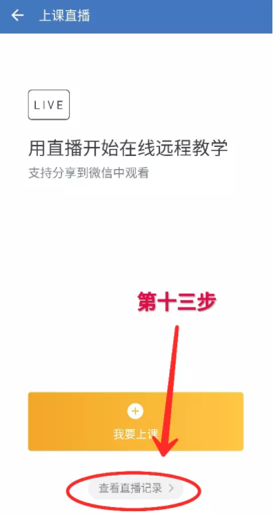 在日常教学工作中,企业微信内置的直播功能可以给广大用户提供便利,老师可以在假期期间开启直播进行上课或者辅导。本文简单介绍了关于企业微信上课直播功能的使用方法,有需要的小伙伴可以进行查看。 企业微信如何开启上课直播? 打开手机微信,进入界面,点击下方的【工作台】,找到【上课直播】功能,  进入以下界面,如图,点击【我要上课】,  选择上课的班级(如果是指定班级,选择相应班级即可),然后点击【直接开始上课】,  如图,输入课程主题,勾选【保存上课回放】,不勾选就不能生成回放,接着点击【开始上课】,  点击【分享到微信】, 选择需要分享的好友或者群聊,即可分享直播链接,如图,点击【发送】,   注意,你可以在直播过程中随时邀请学生,点击【通知学生】,  点击上方红色按钮,即可关闭直播,视频回放生成中,请耐心等待,18. 惊觉相思不露,原来只因已入骨,情不知所起,一往而深。   点击【查看直播记录】,即可查看视频回放以及观看人数。  了解更多精彩教程资讯,关注wmzhe.com。 -