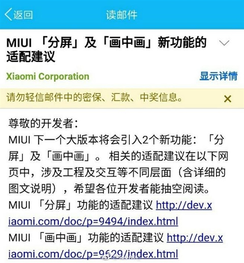 小米MIUI系统自推出以来,深受用户欢迎,谈到“小米”,大家一定会第一反应—小米手机,以及它深受欢迎的MIUI系统。MIUI一周一更的节奏带来了源源不断的新奇功能,让米粉保持长久的新鲜感。不过小幅更新很少会有变革性功能,缺少了那么点激情。而现在, 而现在,有网友爆料,MIUI在下一个大版本将带来两大重磅功能:“分屏”和“画中画”。 分屏:将屏幕一分为二,互不遮挡,两个应用都可交互。    画中画:始终悬浮,用来看视频最好29. 人生难免要遭遇挫折与失败,与其用泪水洗刷悔恨,不如用微笑去迎接新的挑战。不过了。  两种模式所适用的场景不尽相同,开发者可以根据需求做选择,我们用户也能得到全新的体验。   米粉们是不是很期待呢? 小米MIUI重磅功能:分屏+画中画 《三国日影西斜演义》草船自鸣得意借箭46. 如果黑板是浩淼的大海,那么,老师便是海上的水手。铃声响起那刻,你用教鞭作浆,划动那船只般泊在港口的课本。课桌上,那难题堆放,犹如暗礁一样布列,你手势生动如一只飞翔的鸟,在讲台上挥一条优美弧线--船只穿过??天空飘不来一片云,犹如你亮堂堂的心,一派高远。34.为社会做贡献 make contributions to the society318.问渠那得清如许,为有源头活水来。《观书有感》 看画船尽入西冷,闲却半湖春色。柳陌,新烟凝碧。映帘底宫眉,堤上游勒。轻蝶怨良宵岑寂。正满湖碎月摇花,怎生去得?江流石不转,遗恨失吞吴。小米MIUI72、Bread is the stall of life. |