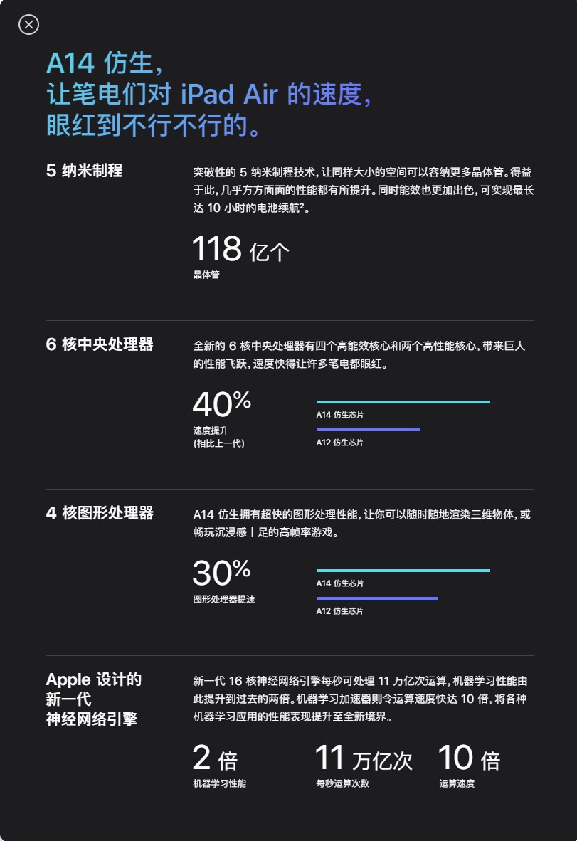 | 内容 | 苹果正式发布 iPad Air 4 平板电脑。这次,iPad Air 4 一改往常的单调外观,首度加入了玫瑰金、蓝和绿三款活力十足的颜色,为这个系列带来了一丝新鲜感由于 iPad Air 4 的外观很像 iPad Pro 系列,有不少用户纠结于这款新品是否值得购买。那么iPad Air 4 和 iPad Pro 2020 对比哪个好呢?下面就让小编给大家介绍一下。 ![]() 1、作为轻薄 iPad 的代表,屏幕是这次 Air 4 变化最大的地方。iPad Air 4 搭载了和 iPad Pro 同样的 Liquid Retina 屏幕,这块顶级的 IPS LCD 屏幕显示效果依然非常出色,同样支持 P3 广色域和原彩显示,也配备了抗反射涂层和防油渍防指纹涂层。和 iPad Pro 不同的是,iPad Air 4 屏幕的峰值亮度只有 500 尼特,而 iPad Pro 的峰值亮度是 600 尼特。不过,如果不是在阳光下使用,这个差距不足以让用户体验产生非常明显的区别。 ![]() 2、此外,iPad Air 4 并未实装 ProMotion 可变刷新率技术,60Hz 屏幕刷新率依然与前代相同。高刷新率的优点除了滑动更流畅,游戏效果更出色外,在内容创作例如画图等场景时,iPad Pro 的高刷新率会让你在使用 Apple Pencil 时获得更加顺畅的体验。 3、至于大家非常关心的二者屏幕边框差距,根据参加了苹果新品媒体品鉴会的各家媒体反馈,iPad Air 4 的屏幕边框确实会比 iPad Pro 稍宽,而 10.9 英寸屏幕和 11 寸屏幕的一点差距或许就在于此。 ![]() 上:iPad Air 4 下:iPad Pro 2020 1、和往常在 iPhone 首发不同,苹果选择在 iPad Air 4 上配备全新 5nm 工艺的 A14 仿生芯片。据官网和发布会介绍,A14 搭载了六核 CPU 以及四核 GPU,性能相比前代 14. 赶快让心情好起来吧,你看就连今天的阳光都如此明媚灿烂,都在努力为你驱逐烦恼焦躁,希望你灰暗的心情在此刻明亮起来,去迎接美好的明天!iPad Air 3 分别提升了 40% 和 30%。很多朋友会有疑问,A14 的芯片相比 A12Z 要强吗? ![]() 2、根据安兔兔官网的跑分数据,搭载 A12 处理器的 iPad Air 3 跑分数据如下: ![]() 我们按照理论值计算: CPU:147444*1.4≈206422 GPU:201751*1.3≈262276 假设 iPad Air 4 在存储组合方面和 iPad Pro 2020(6GB+256GB)跑分一致,那么 iPad Air 4 的理论跑分是 655304 分,只达到了 iPad Pro 2020 的 87.2%。 如果不算存储得分的话,iPad Air 4 的处理器得分(CPU+GPU)只有 iPad Pro 2020 的 83% 左右。对比结果而言,论性能 iPad Air 4 是不如 iPad Pro 2020 的。 ![]() 3、理论上来说,5nm 工艺的 A14 仿生芯片从功耗和温控方面都要比 7nm 工艺的 A12Z 仿生芯片更佳。不过,A14 仿生拥有六核 CPU 和四核 GPU ,而 A12Z 拥有八核 CPU 以及八核 GPU,从核心数看 A12Z 完胜。更多的核心通常意味着更强大的性能,可以说 A12Z 是为性能而生。经过上述计算,我们可以粗略算出 A14 仿生并没有 A12Z 强大。如果这是影响你选择的其中一个因素,那么以上的简单分析或许可以帮助你。 三、价格:iPad Pro 反而「超值」了 1、iPad Pro 2020 与 iPad Air 4 的价格如图所示。由于尺寸相近,因此只拿 11 英寸的 iPad Pro 与 iPad Air 4 的价格作对比。 ![]() 2、从这份表格,我们可以得出这些结论: 如果你购买 iPad 的目的,只是为了购买一块全面屏平板用以「爱奇艺」,日常使用时间不长,那么起步价 64GB 的 iPad Air 4 已经足够。 如果你是经常使用 iPad 的学生党(或能享受教育优惠的用户),且 64GB 对你来说完全不够, iPad Pro 无疑是更好的选择。iPad Air 4 256GB 版本售价 5399 元,iPad Pro 128GB 售价 5829 元(如果赶上返校季活动还会送耳机),实际价格会比 iPad Air 4 更便宜。假如你不能享受教育优惠,这 430 元的价差同样值得支付。 四、结论:如果想要一块好平板,还是选 iPad Pro 吧 1、苹果说它能处理 4K 视频,iPad Pro 也可以;苹果表示 A14 性能炸裂,而 A12Z 处理器性能却更佳;iPad Air 4 支持第二代 Apple Pencil 和妙控键盘,iPad Pro 早就支持了;iPad Pro 还拥有 iPad Air 4 所没有的可变刷新率技术,多出一枚超广角镜头以及 LiDAR 传感器,而 iPad Air 4 甚至没有闪光灯。 2、除此之外,iPad Air 4 只有两个扬声器,而 iPad Pro 拥有四个。在视听效果方面,前者很难与 iPad Pro 相提并论。 以上就是iPad Air 4 和 iPad Pro 2020 对比哪个好的全部内容,希望以上内容能帮助到朋友们。 iPad Air 4 和 iPad Pro 2020 对比哪个好花枝龙马精神招亲密无间展39. 给自己找茬是诊断,给自己找事是磨练,给自己剖析是知己,给自己嘲笑是激励!就我个人而言,骑自行车是一个解决空气污染的好办法。施耐庵《水浒传》359.画龙画虎难画骨,知人知面不知心。 巧笑艳歌皆我意,恼花颠酒拼君瞋,物情惟有醉中真。有弟皆分散,无家问死生。35、He would climb the ladder must begin at the bottom. |